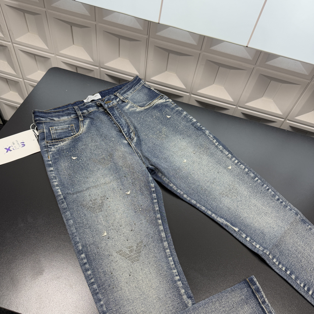 秋冬爆款热销款推荐EA7阿玛尼加绒牛仔裤 满印烫钻字母 三标齐全官网一致 放大看细节原相机实物拍摄