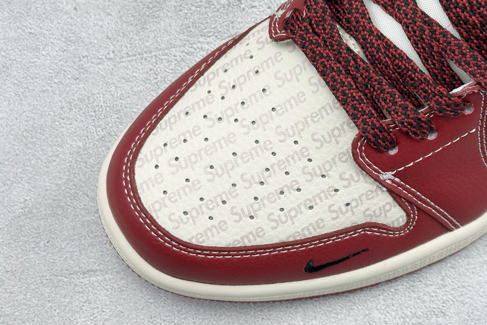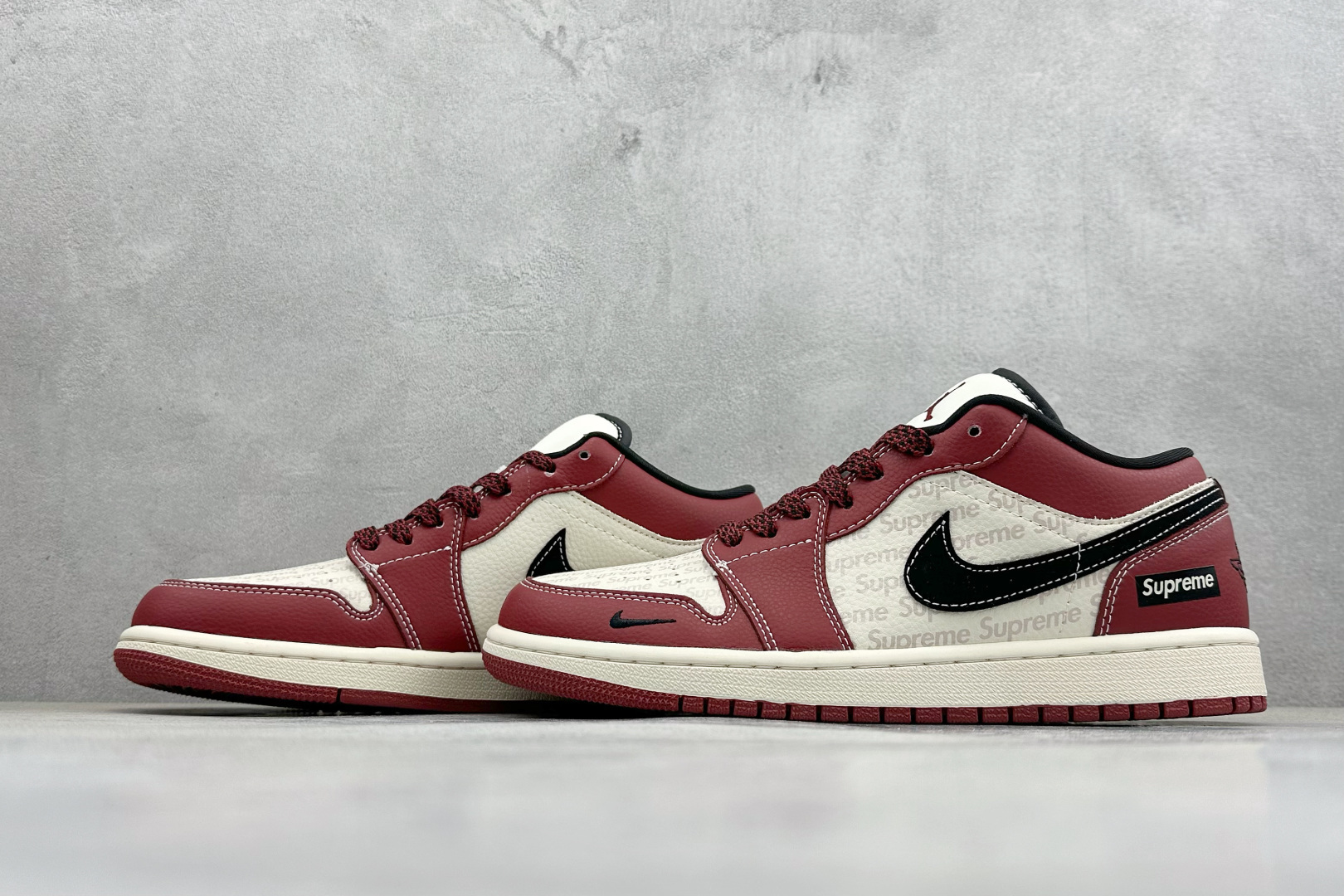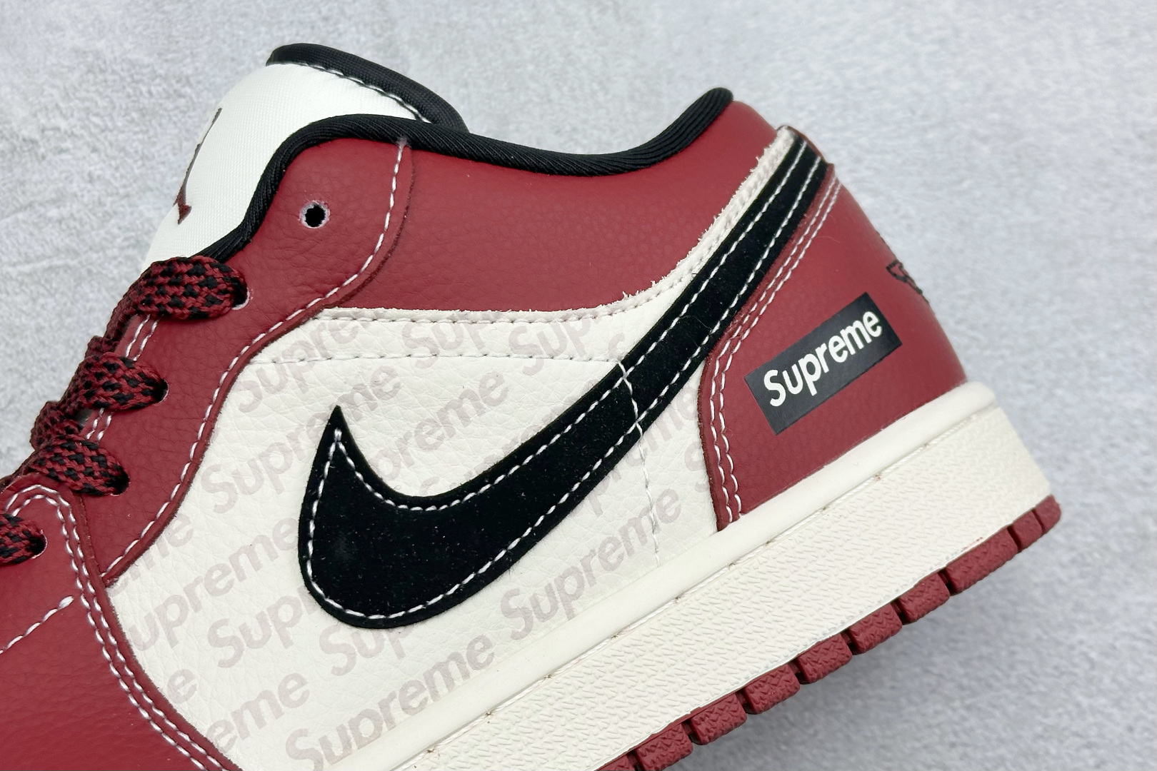 Nike Jordan Air Jordan 1 Supreme联名 英文红黑勾 高端定制 乔丹低帮休闲板鞋 大厂纯原品质出货 纯正版型 定制鞋盒 皮料切割干净无任何毛边 细节完美 超高清洁度