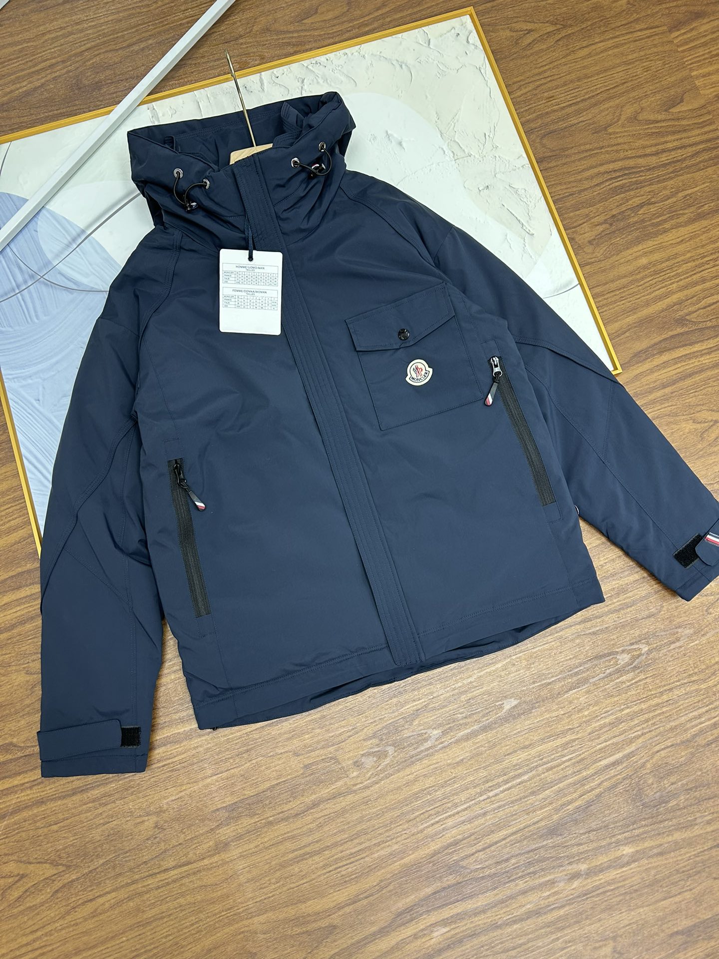 细节图 蒙口连帽胸前口袋款羽绒服 羽皇Moncler 盟可睐 巴黎时装周走秀款 男士短款羽绒服 设计时尚百搭舒适透气 隐藏帽蒙口羽绒服 支持NFC芯片感应 官网同步发售 设计感与颜值爆棚的羽绒外套 品控可以直接入手 不容过错的高端臻品 简单大气设计 并刻有品牌logo字母 整体设计感让这件衣服与众不同 客进口采用进口科技面料精制而成 填充90白鸭绒 面料质地材质造型极致通过细节图片便可感受到它强悍的气场 并且拥有优越的帅气感与保暖性能 各种场合都能轻松上身 聚温保完全不用担心会有一点寒意 门襟采用皮拉链设计 时尚与功能性兼备 彰显造型的同时也很保暖 口袋是皮的设计让整款显得更加的奢华大气