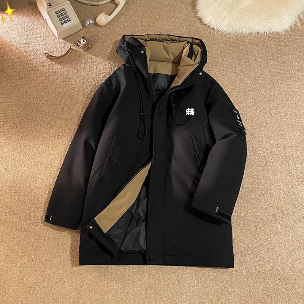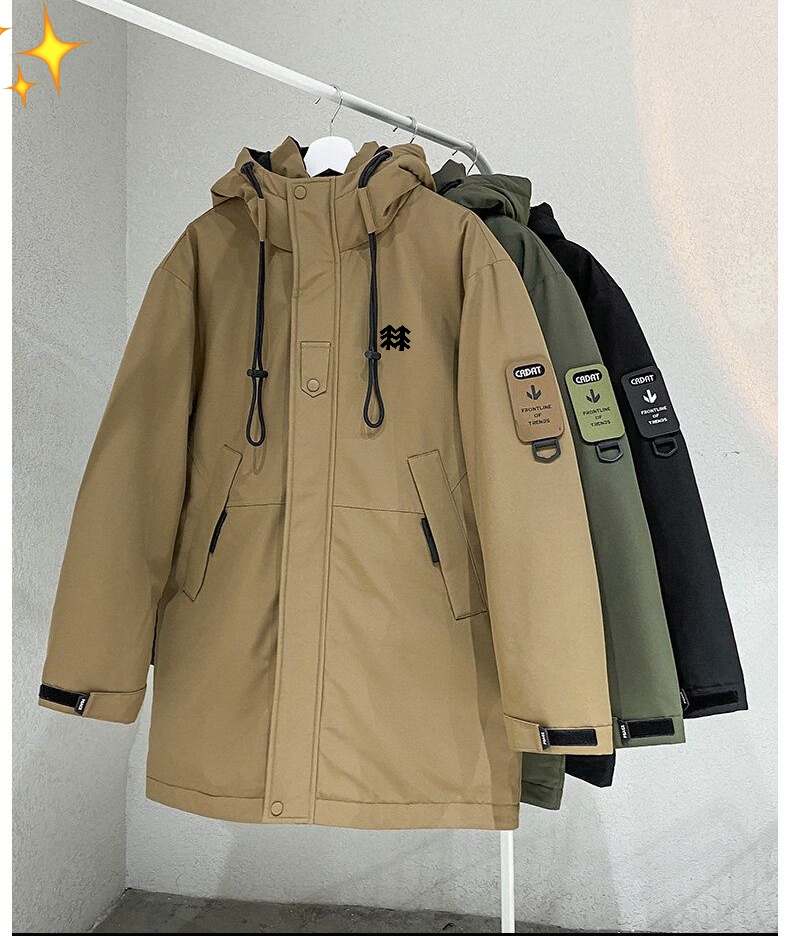 冬季最新款男连帽中长款棉衣 羽绒棉棉服 厚度适中舒适保暖 运动休闲皆宜 连帽款 胸前经典logo 版型款式超帅 非常低调 并且不失时尚 修身显瘦 最经典的款式 带点韩味 也是本期的福利哦 这款棉服绝对神百搭 不管运动裤 牛仔裤休闲裤还是商务 都可以搭配的非常好看 基础款的东西一般店铺都有陈列的 随意对比 中长款 面料更具户外机能面的的特质 羽绒棉填充 上身一点都不觉得臃肿 这样一件棉衣 完全可以抗衡这一个冬季 棉服最大的好处就是不钻毛 并且好打理