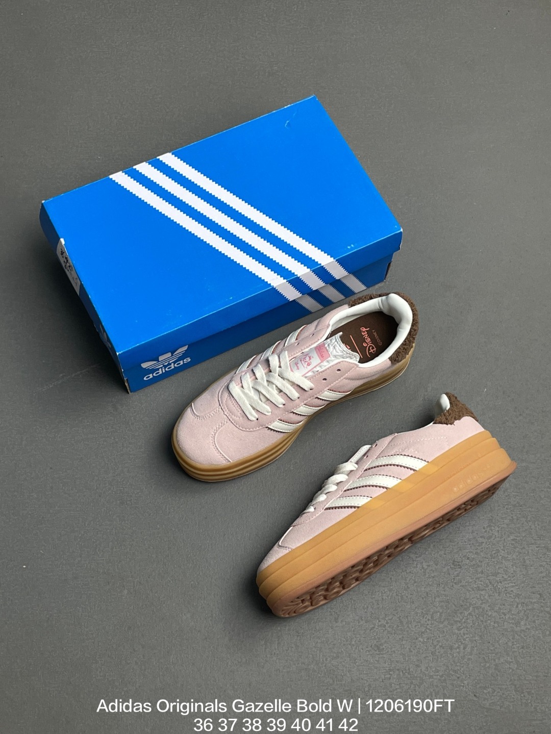 Adidas 阿迪达斯 采用翻毛皮组合纤维革鞋面材质 外置加厚橡胶大底三层松糕 女生绝对爱 阿迪达斯Adidas Originals Gazelle Bold W 羚羊松糕系列复古百搭厚底增高低帮休闲运动板鞋