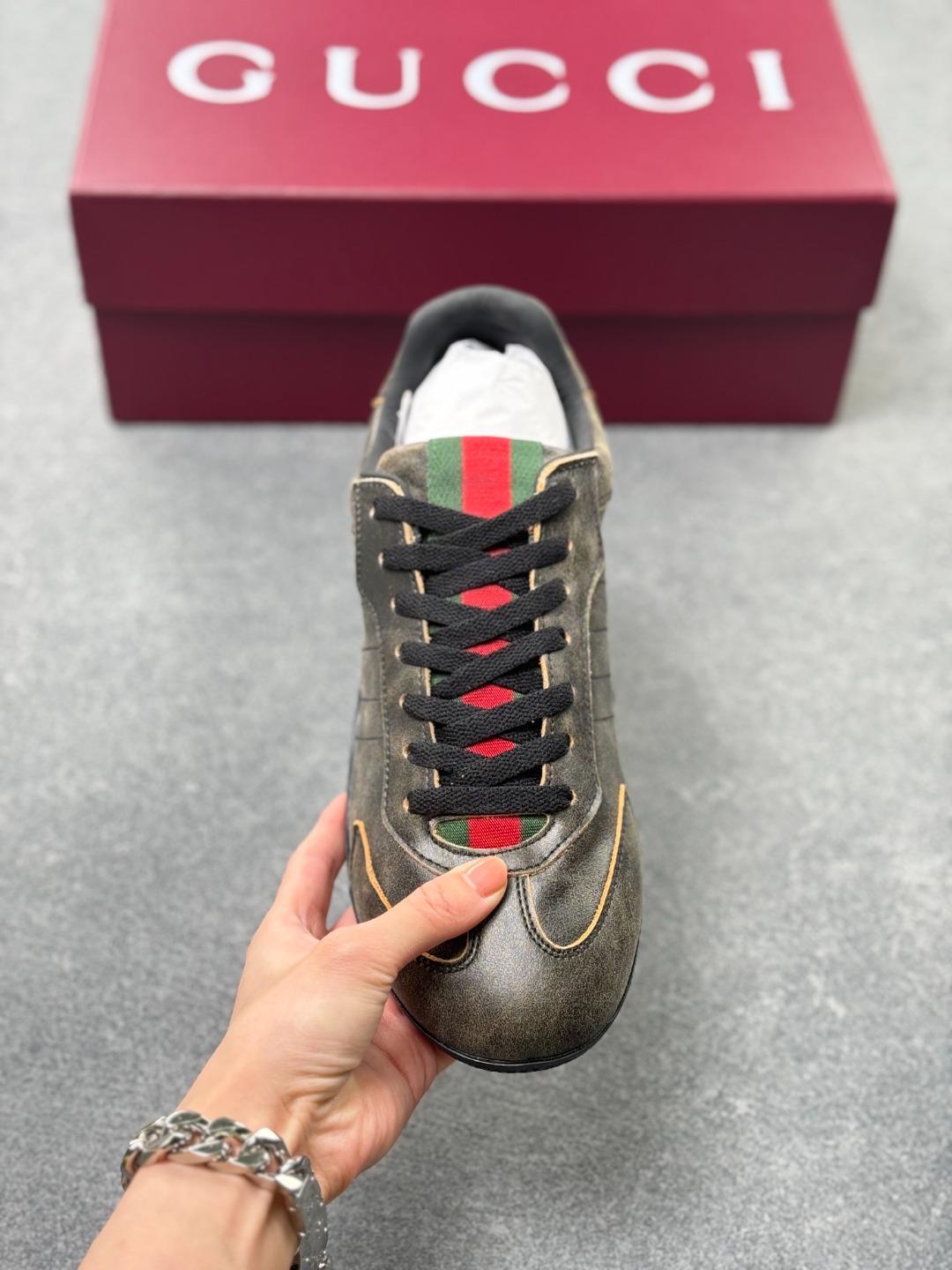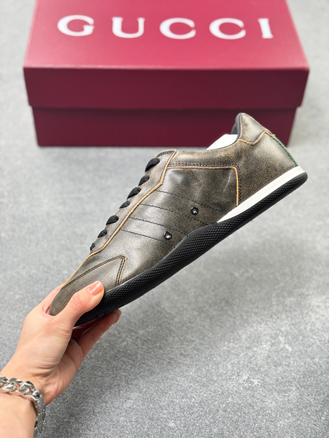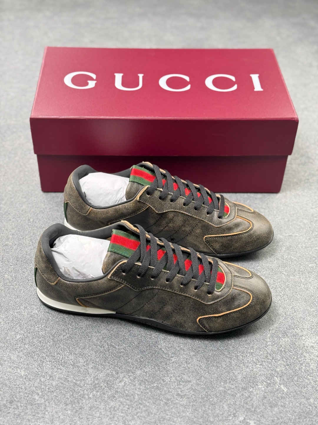 GUCCI古驰 Shift 皮革 圆头系带 低帮 生活休闲鞋 1cm