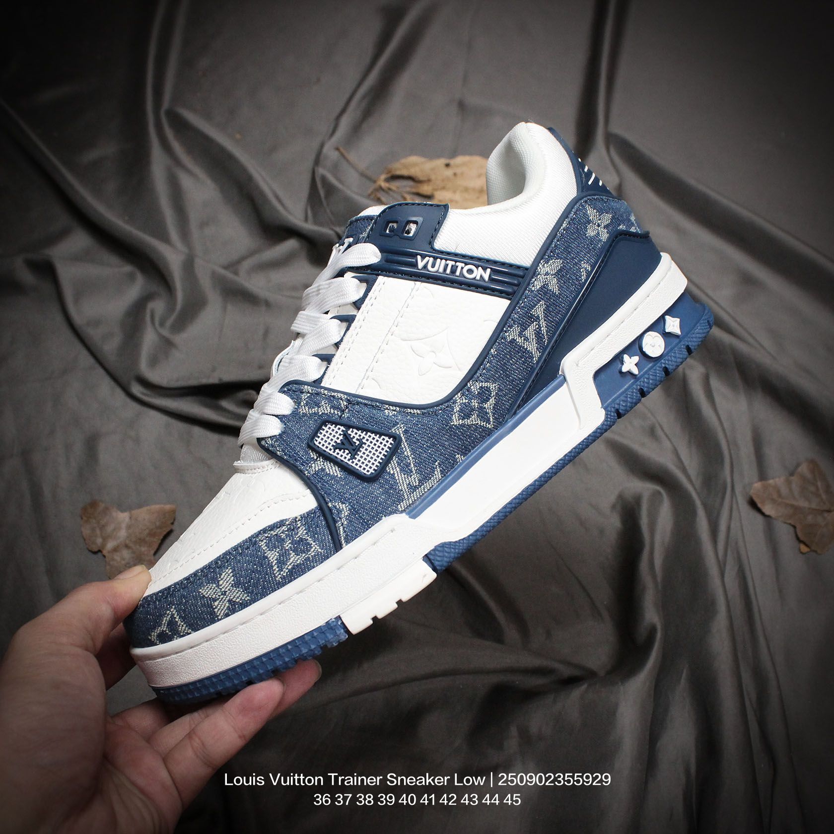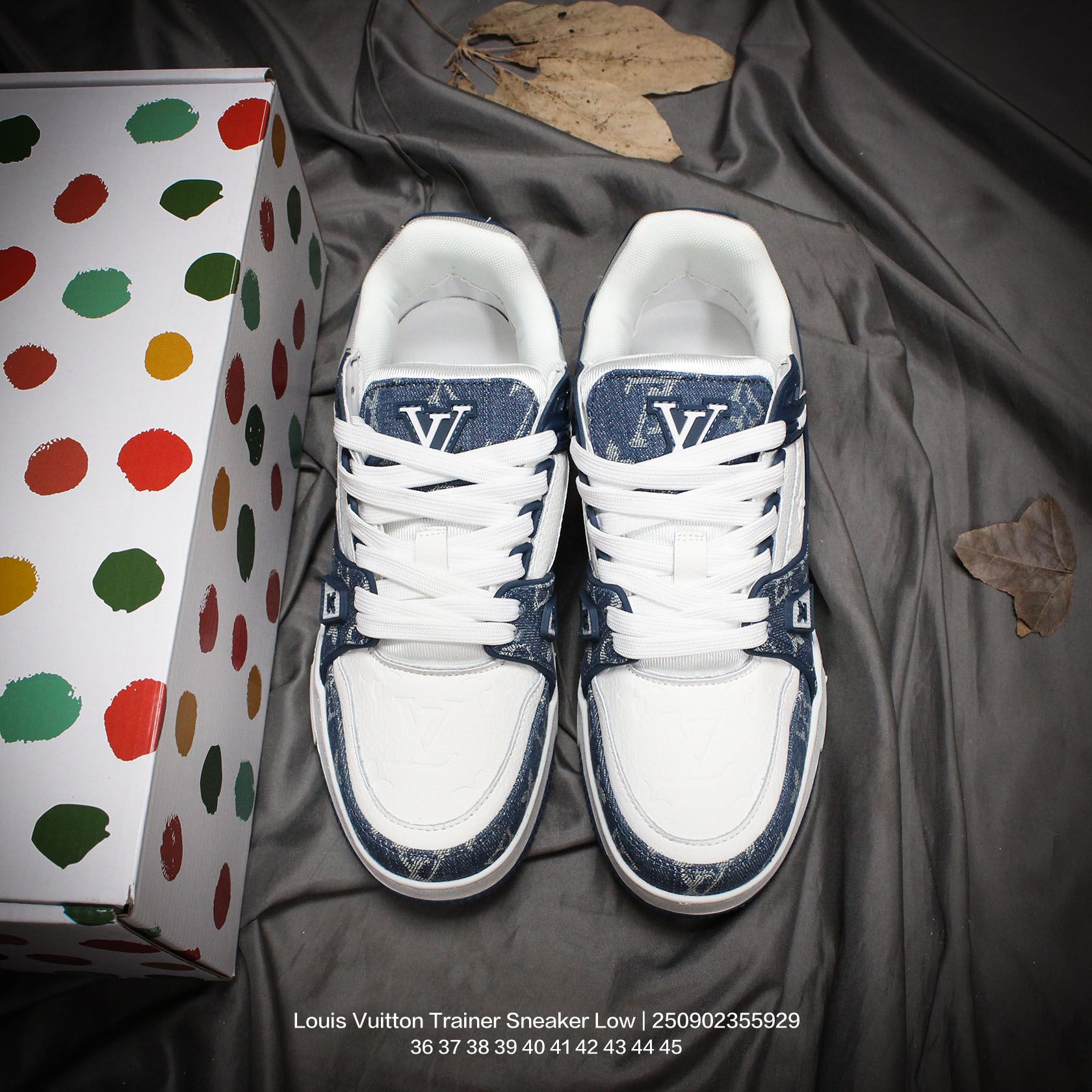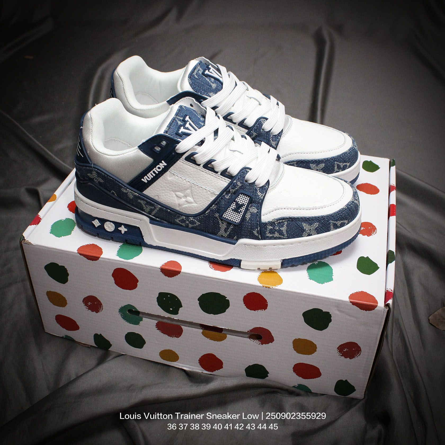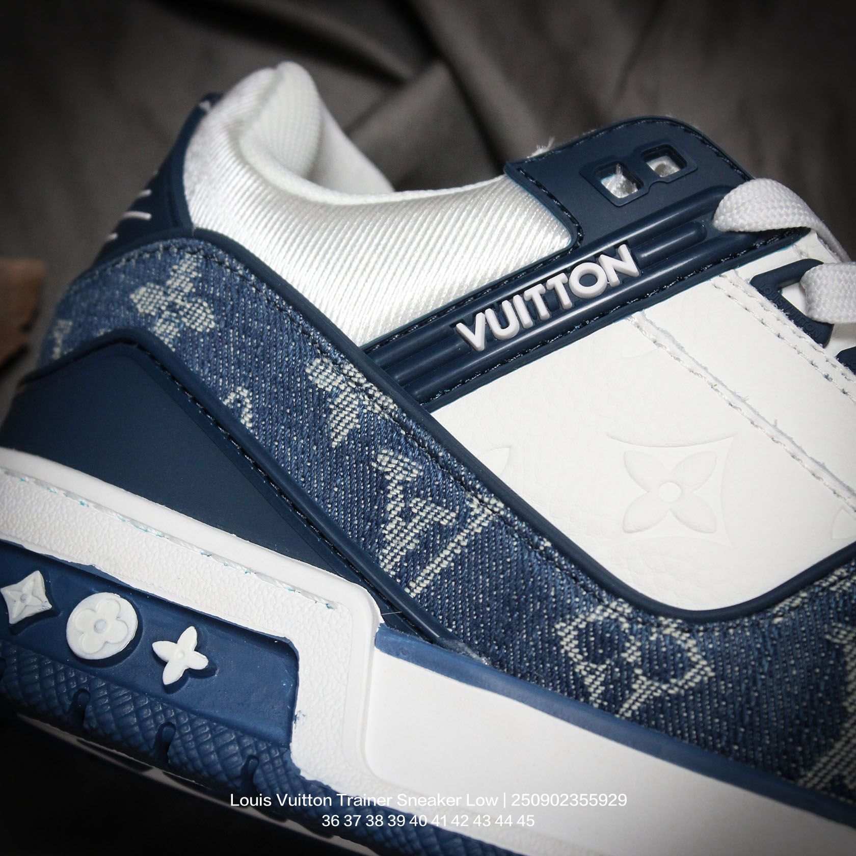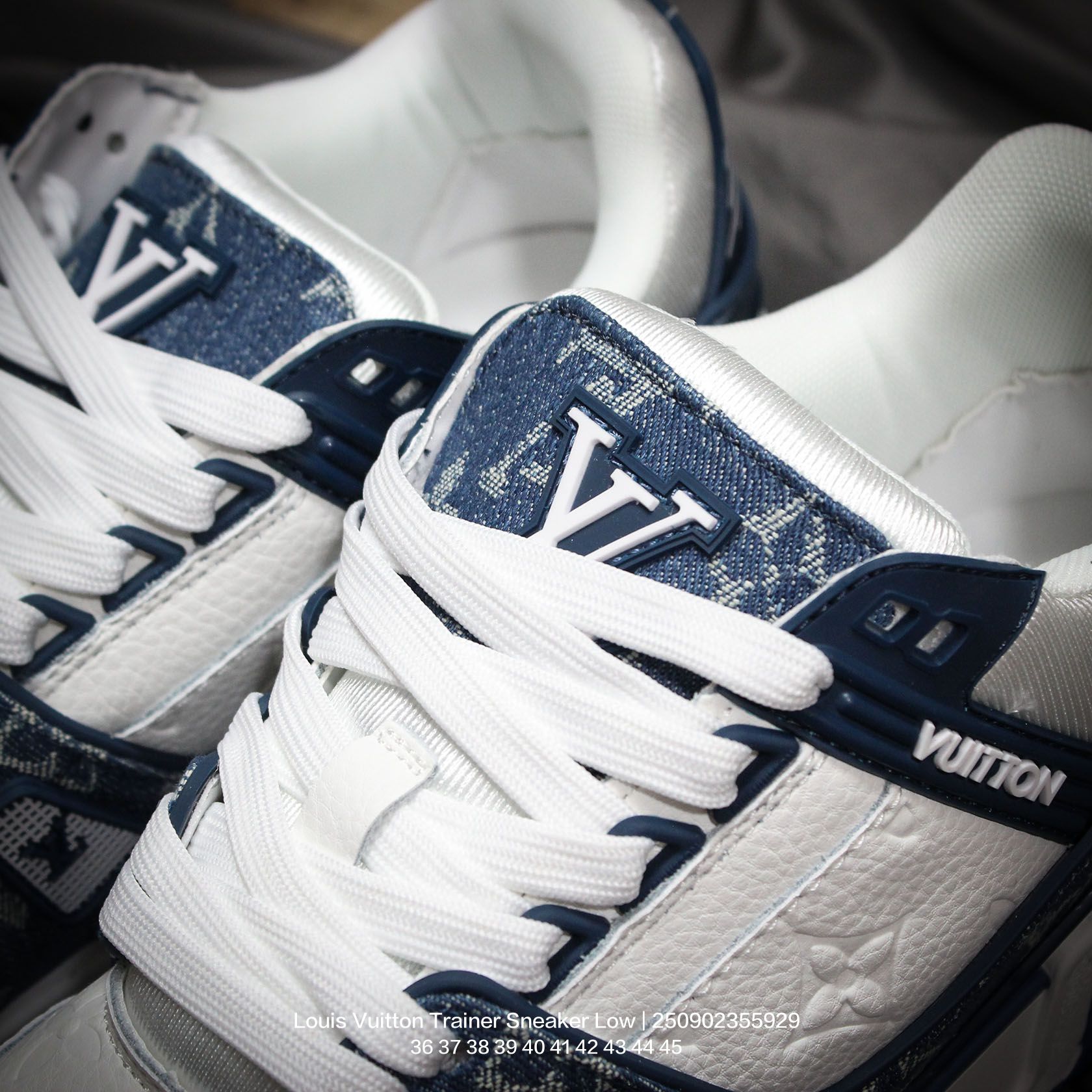Louis Vuitton 路易威登 男女鞋配置厚实抽屉礼品鞋盒 采用荔枝纹纤维革组合粒面牛剖革鞋面材质 鞋垫嵌入软脚感EVA物料 外置TPR光泽隔色鞋底法国巴黎百年奢侈品牌LV路易威登Louis Vuitton Trainer Sneaker Low 运动系列低帮复古百搭休闲运动文化篮球板鞋