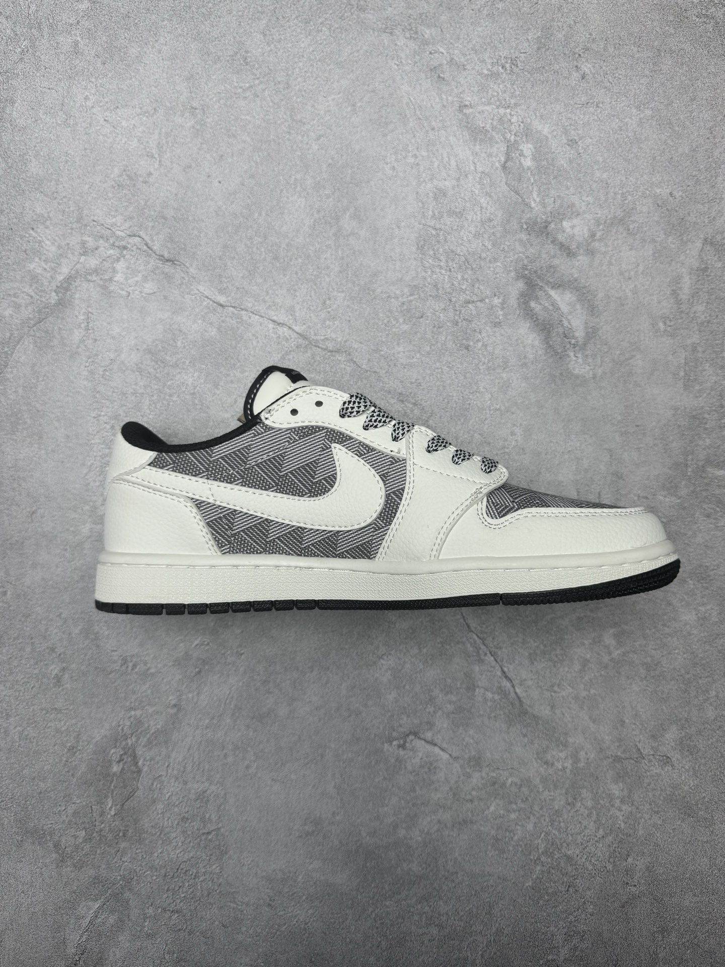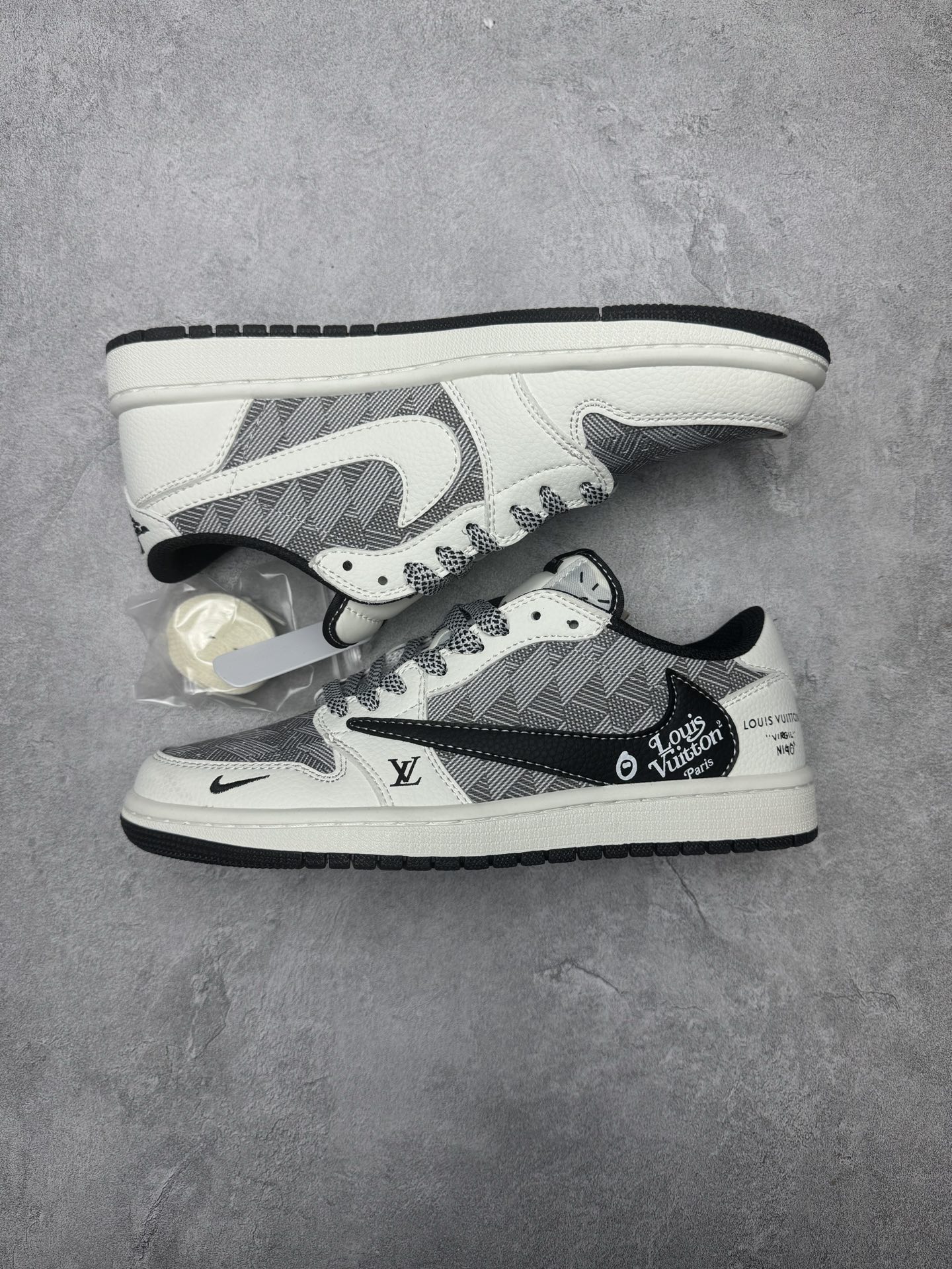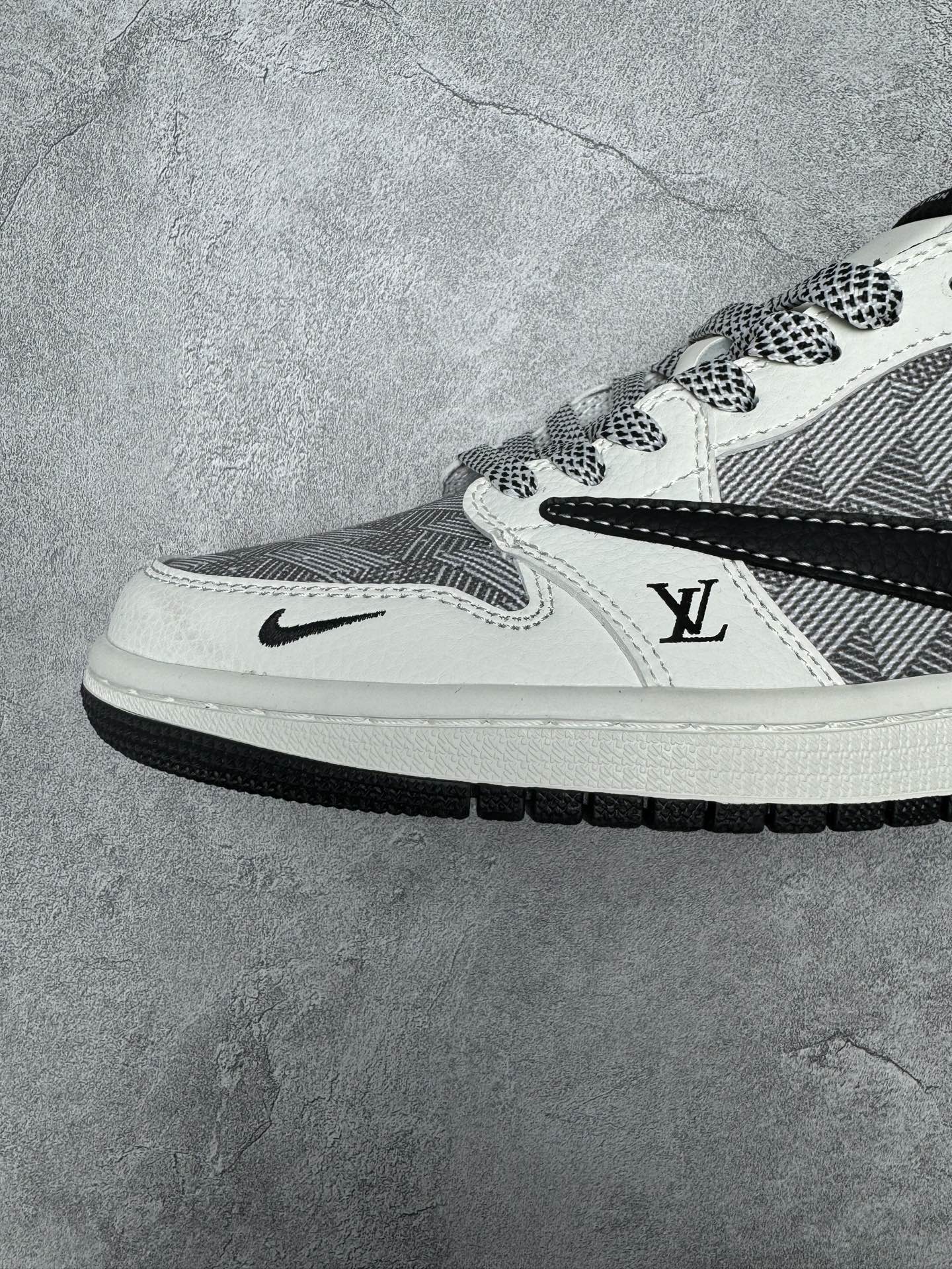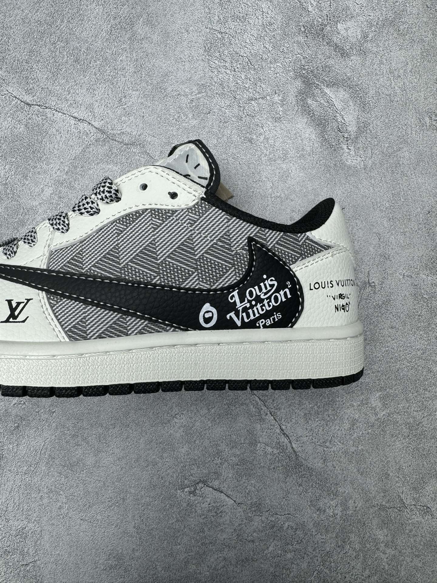 高端定制 Travis Scott x Jordan 1 Low LV联名 白灰格纹 倒勾低帮休闲版本 原厂全头层皮 大厂纯原品质出货 纯正版型 定制鞋盒 皮料切割干净无任何毛边 细节完美 超高清洁度