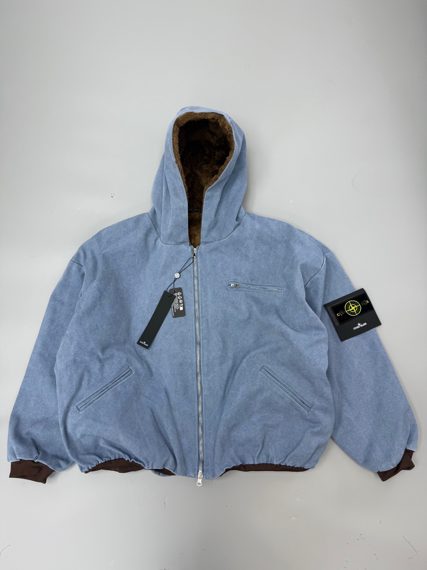 代发 Stone Island石头岛冬季水洗做旧座山雕情侣款款连帽棉服外套