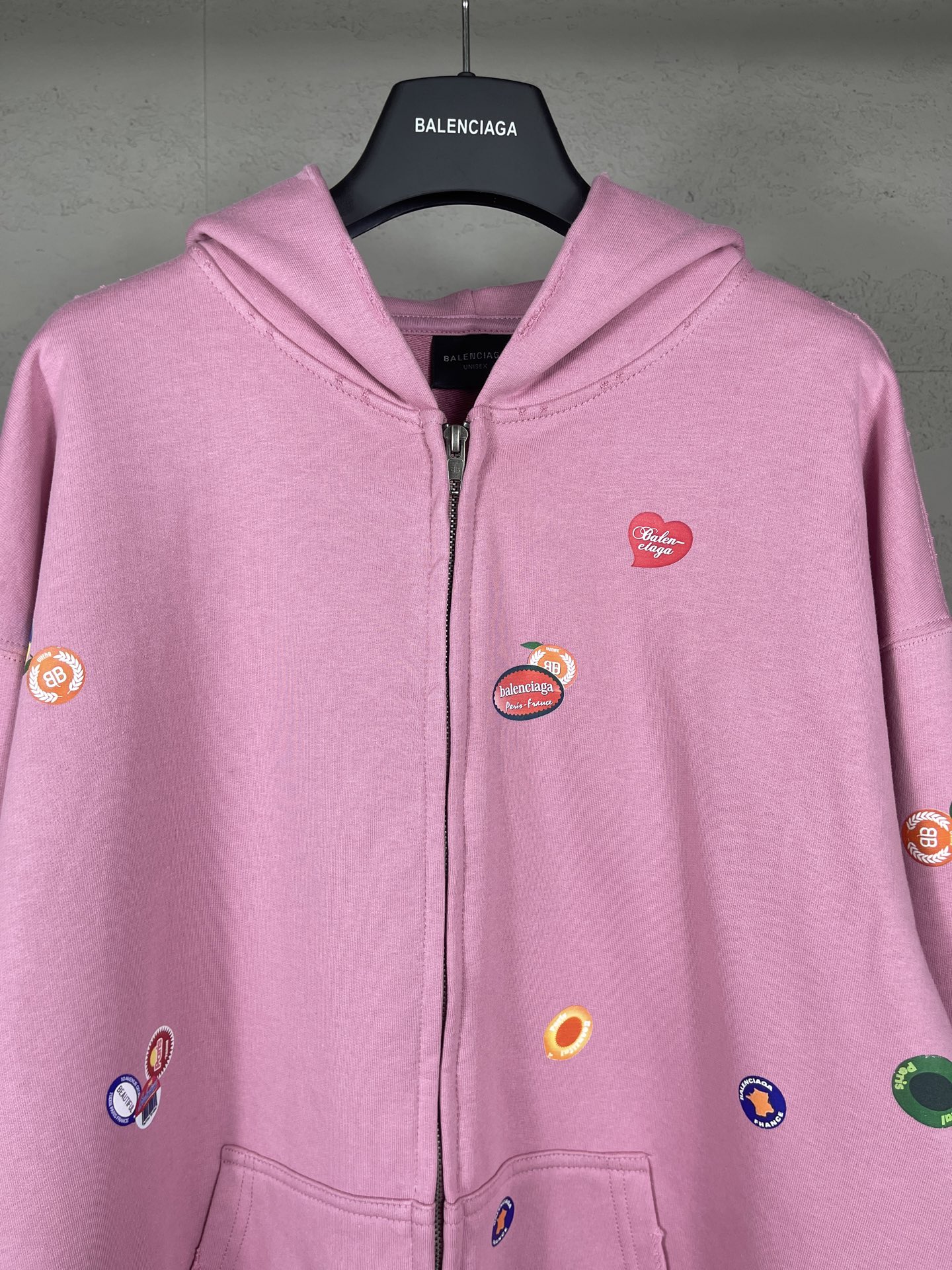实拍图 顶级版本 官网品质 BALENCI GA 巴黎 2025秋冬新款 水果图案Vintage满身压印洗水做旧连帽卫衣