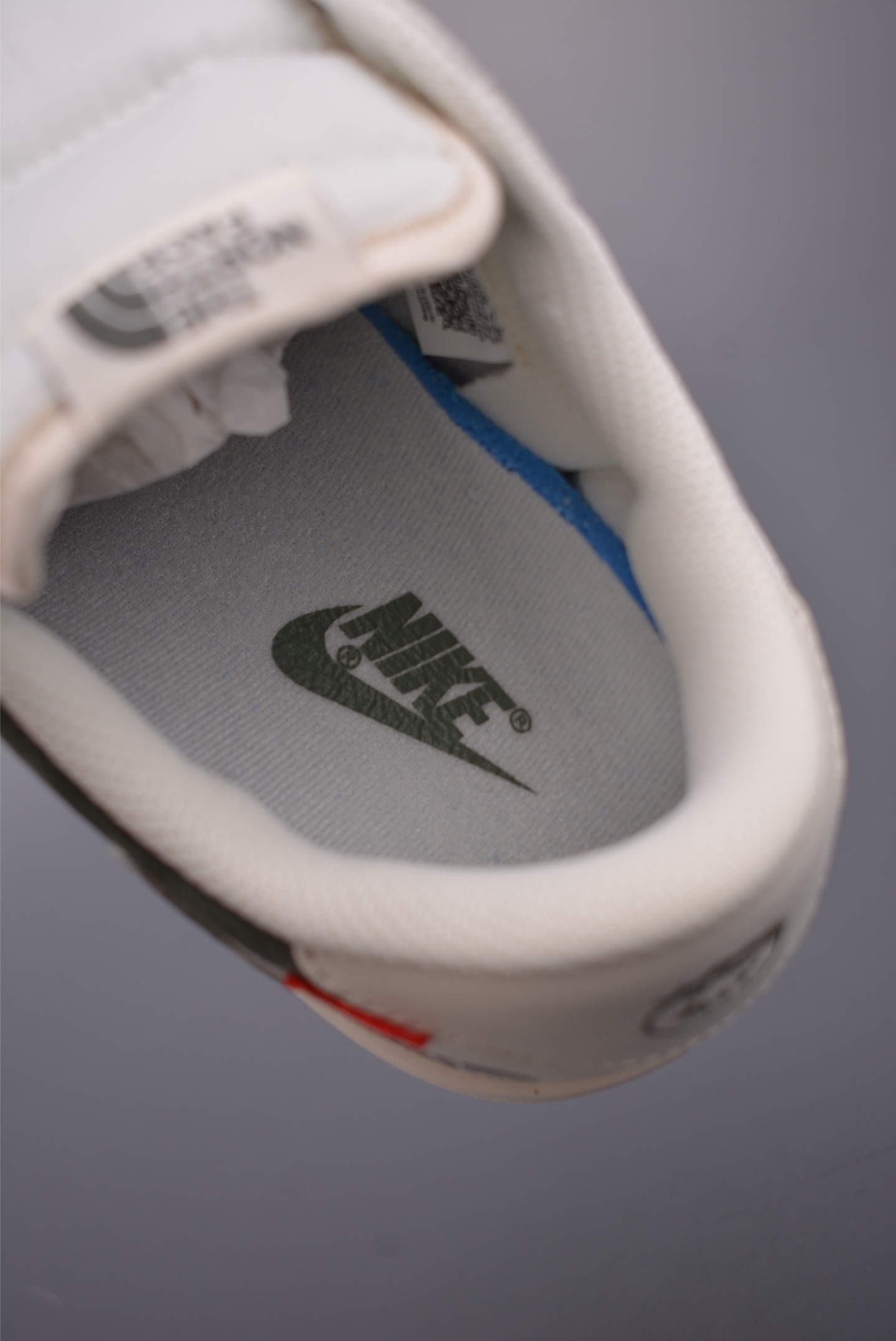 全新的三方联名低帮倒钩鞋面延续了黑脚趾设计 整双鞋以全荔枝皮打造 腰身搭配白色 倒勾 再点缀上Travis Scott 标志性的Logo 后跟处以藤原浩最拿手的蓝色为主色调 完善极具Fragment Design的白蓝黑设计风格 左右脚分别以Travis Scott鬼脸和乔丹飞翼加以修饰 彰显出三方联名的奢华格调