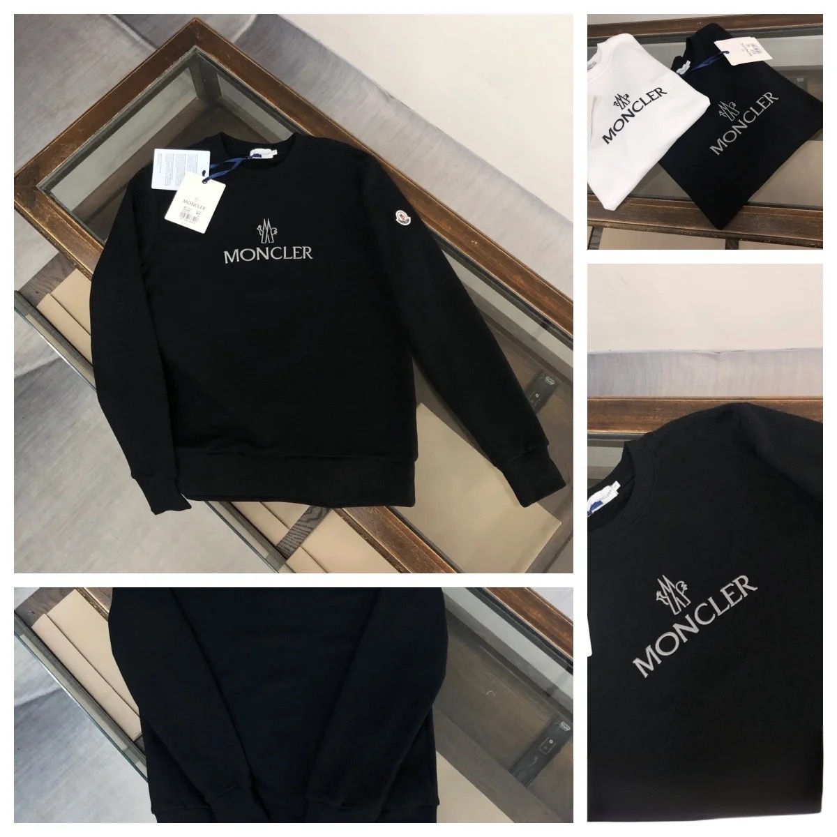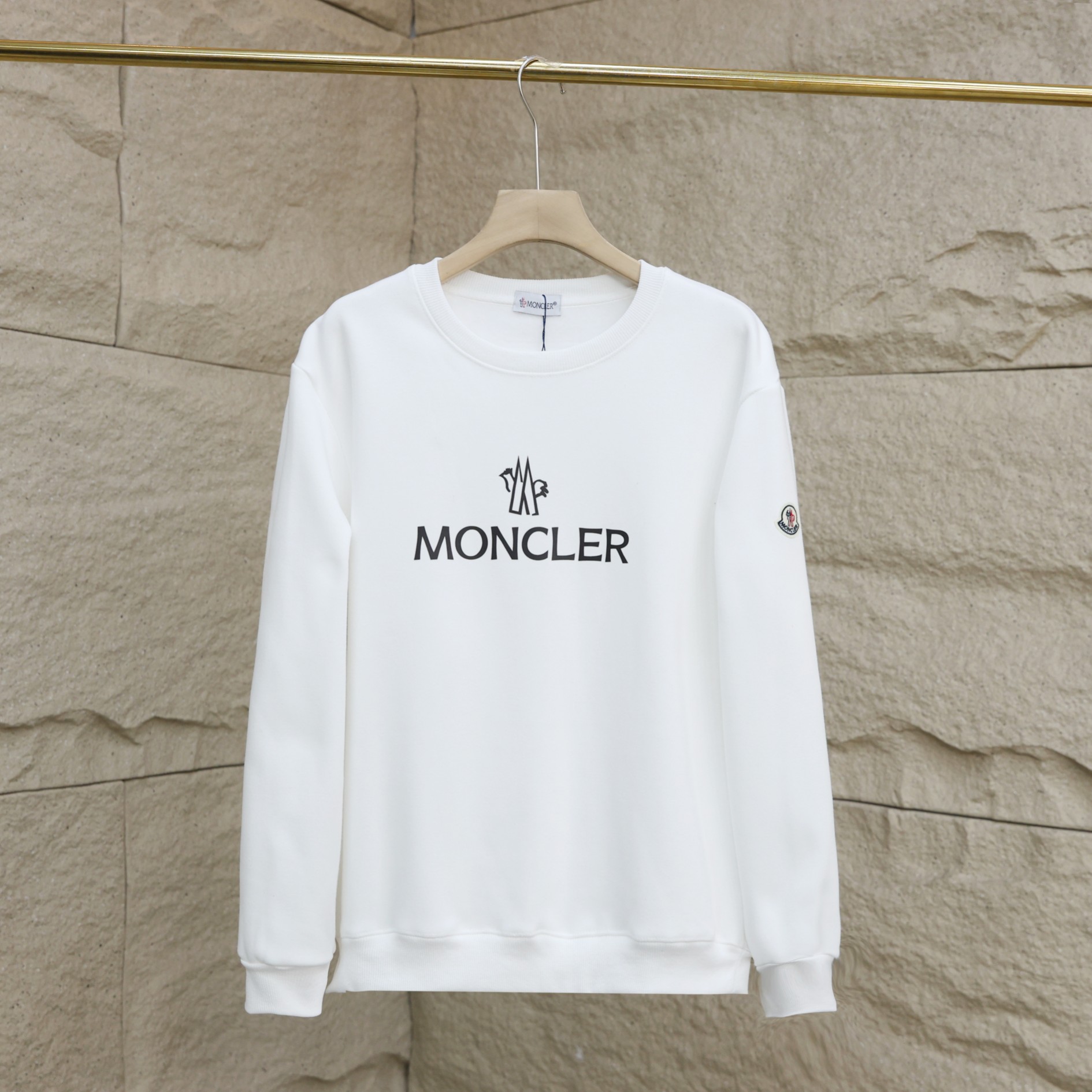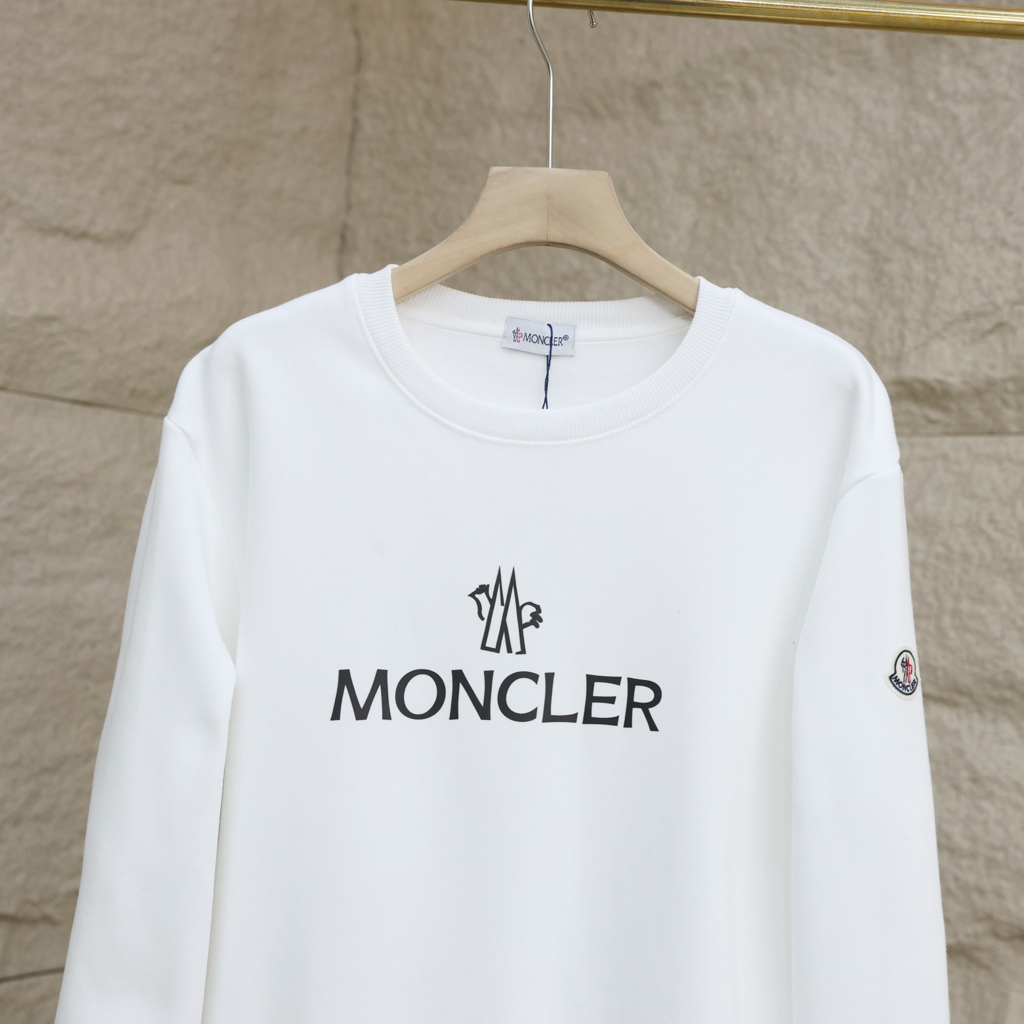 特价 只有白色 特价款不退不换 MONCLER 蒙口加绒 秋冬情侣款圆领卫衣 加绒圆领卫衣落肩款 精梳绒不起球 今年最流行面料 专柜主打款