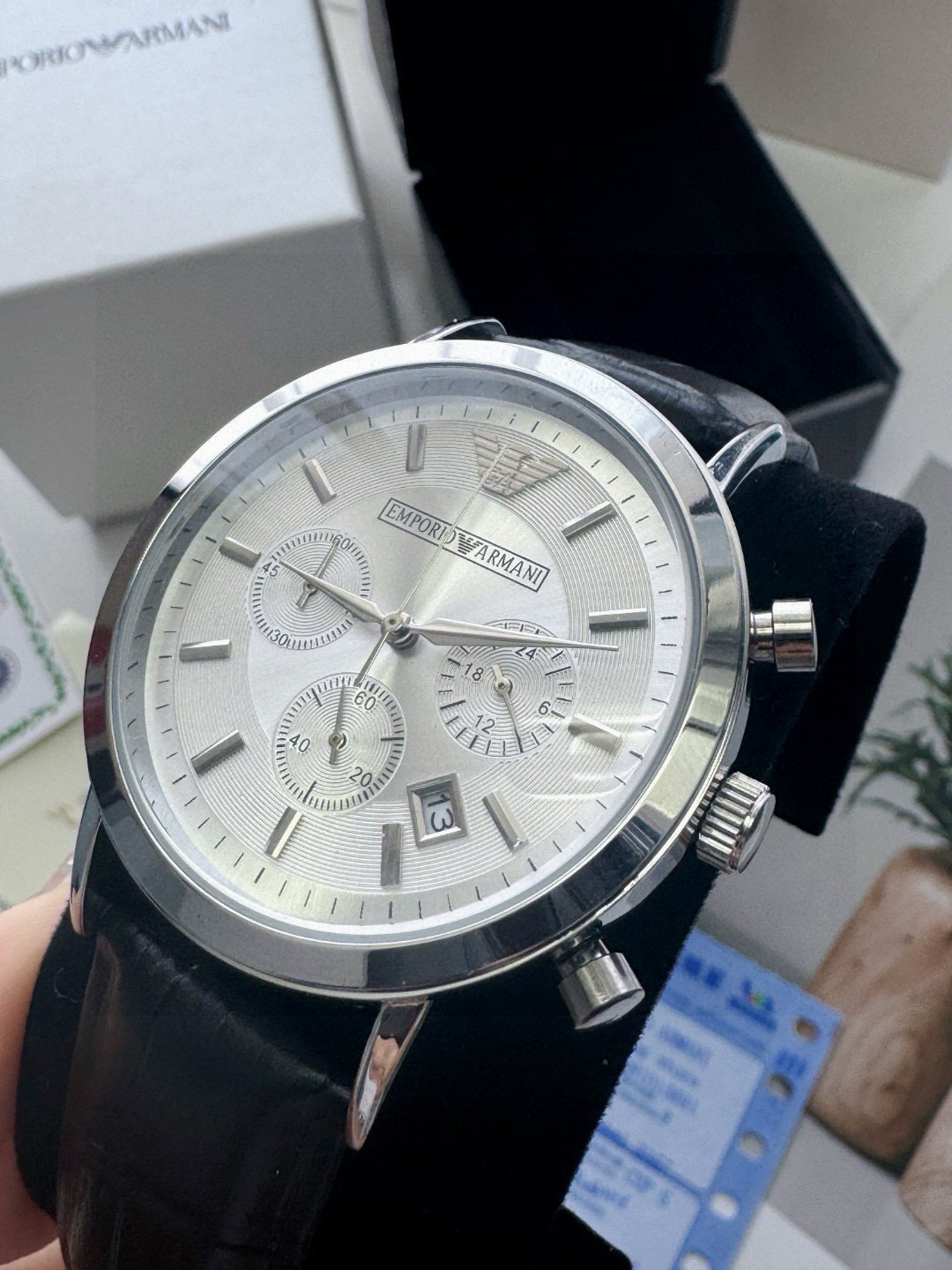 所见所得高品质 阿玛尼皮带白面男士手表Armani 阿玛尼经典休闲商务款 男士皮带手表 白色表盘 三眼设计 小牛皮表带石英表 表盘直径42mm 矿物质玻璃镜面 清晰高透 设计超级精致 表盘表带都十分简约大气 整个气质马上不一样了 小红书剁手款 男神钟爱款 上班不失风度 体现男性硬朗之风和成熟稳重的气质 休闲商务不二之选 无佩戴支持退换 配专柜全套包装