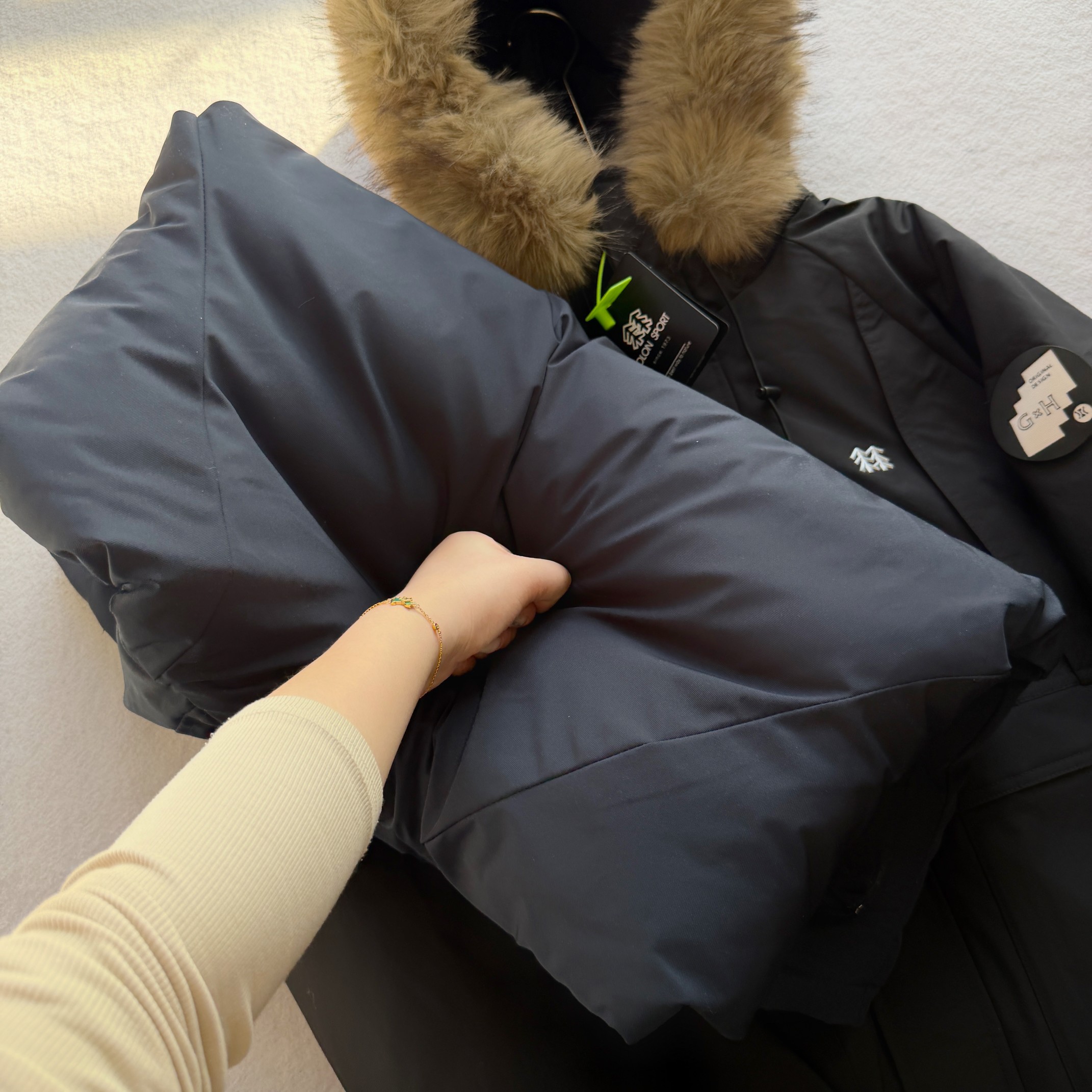 易打理不褪色 给一个健康舒适的穿着体验 可脱御帽毛设计 简约利落 由里到外细节严格把控 严防寒风入侵提高防寒保暖性 内里采用高克重丝棉超级保暖厚实 不臃肿 胸前经典Logo时尚 面料采用最新型面料 厚实 耐穿 耐磨 总之 值得自留的一件棉衣