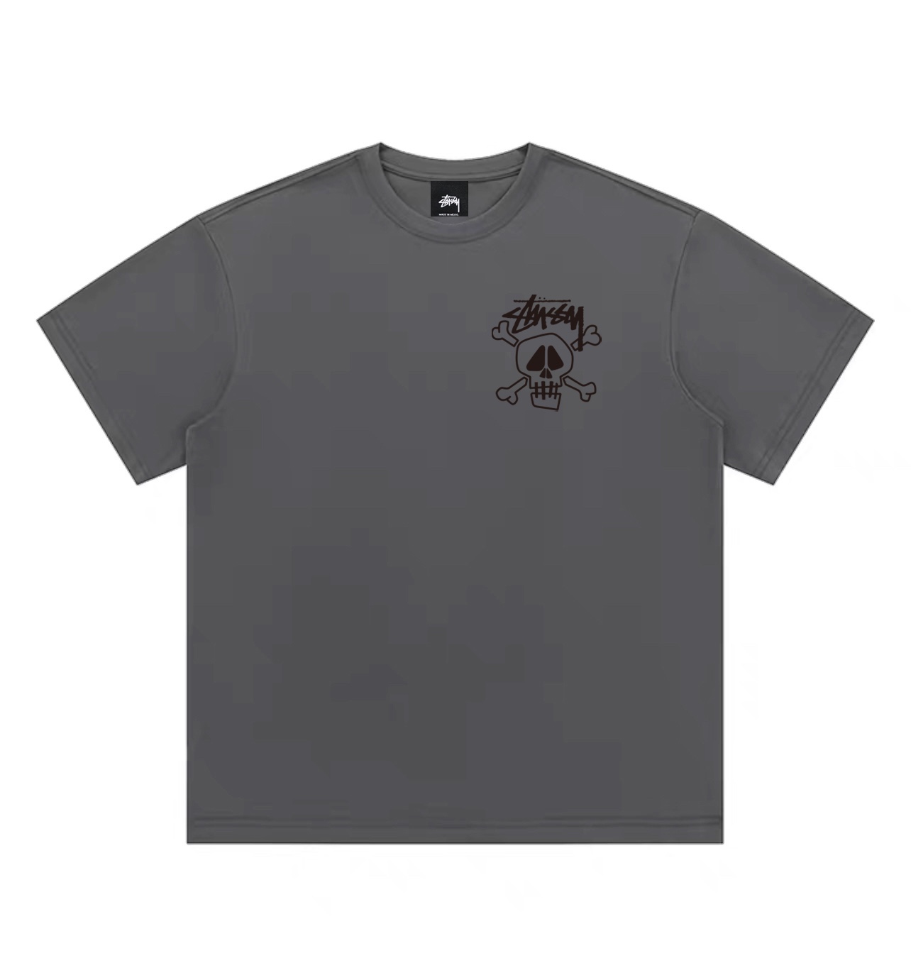 Stussy 斯图西官网新款骷髅头圆领短袖半袖T恤 面料采用260克纯棉双纱食毛面料 双线二本针压线 久洗不变形 原版定制三标 高端进口印花 随意水洗 情侣可穿 男女同款 黑色 白色 深灰色 M XL M 衣长70肩宽51胸围112 L 衣长72 肩宽54胸围116 XL衣长74肩宽57胸围120