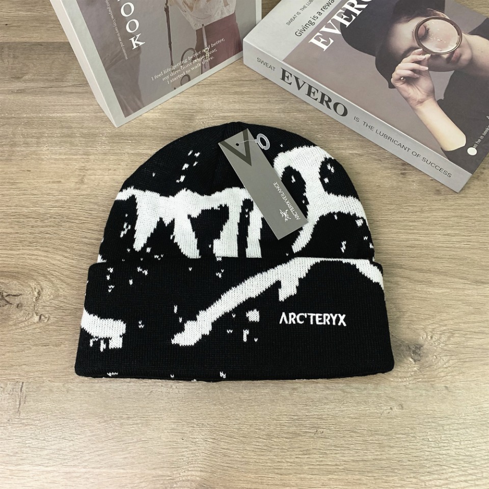 ARC TERYX始祖鸟大LOGO毛线帽秋冬冷帽男女休闲户外百搭街拍个性保暖帽子显脸小大头围帽