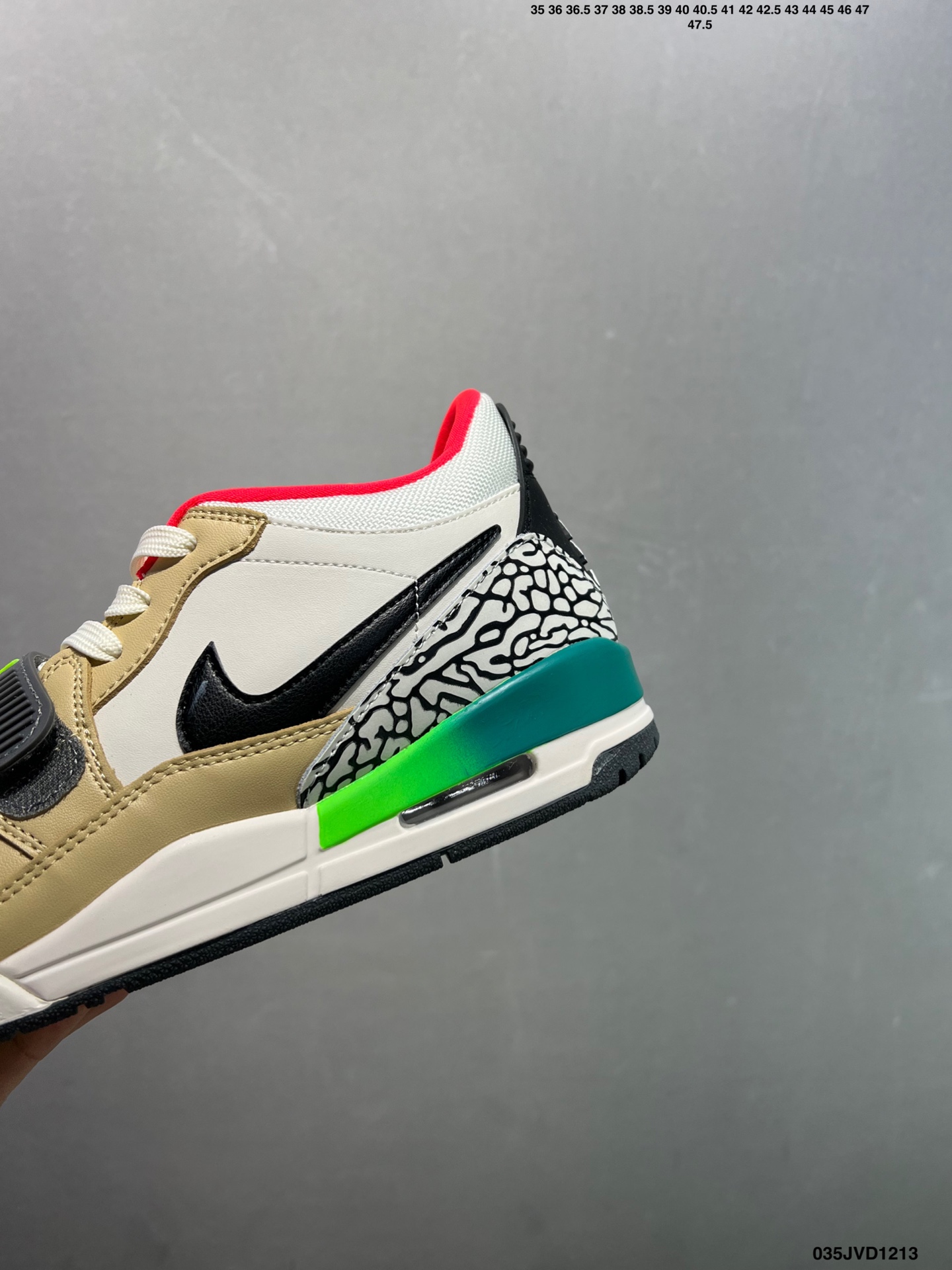 公司级耐克 Nike AJ312 Air Jordan Legacy 312 NRG Pure white 官方货号 CD7069 141乔丹联名号称 最强三合一 的 Jordan Legacy 312 自然有着杂交结合的设计 它的名字就展现出它所包含的鞋款元素 312 分别对应了 Air Jordan 3 Air Jordan 1 和 Air Trainer 2 将这三双经典又有不俗人气的鞋款融合 最强三合一 的名称由此得来 Size 36 44半码 ID 035JVD1213