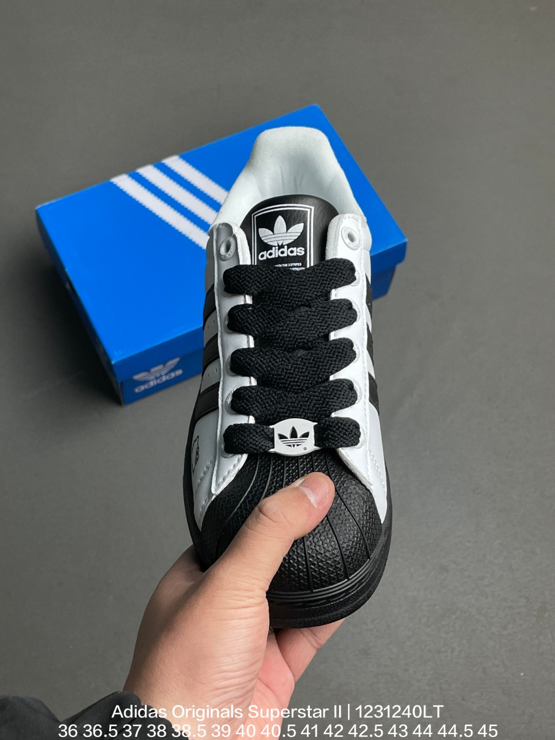 Adidas 阿迪达斯 升级原楦原纸版开发 采用牛剖革鞋面材质 2020改良全包围鞋垫 正确2020版鞋底模具及扇贝头盖片阿迪达斯 三叶草Adidas Originals Superstar II 经典贝壳头系列低帮百搭休闲运动板鞋