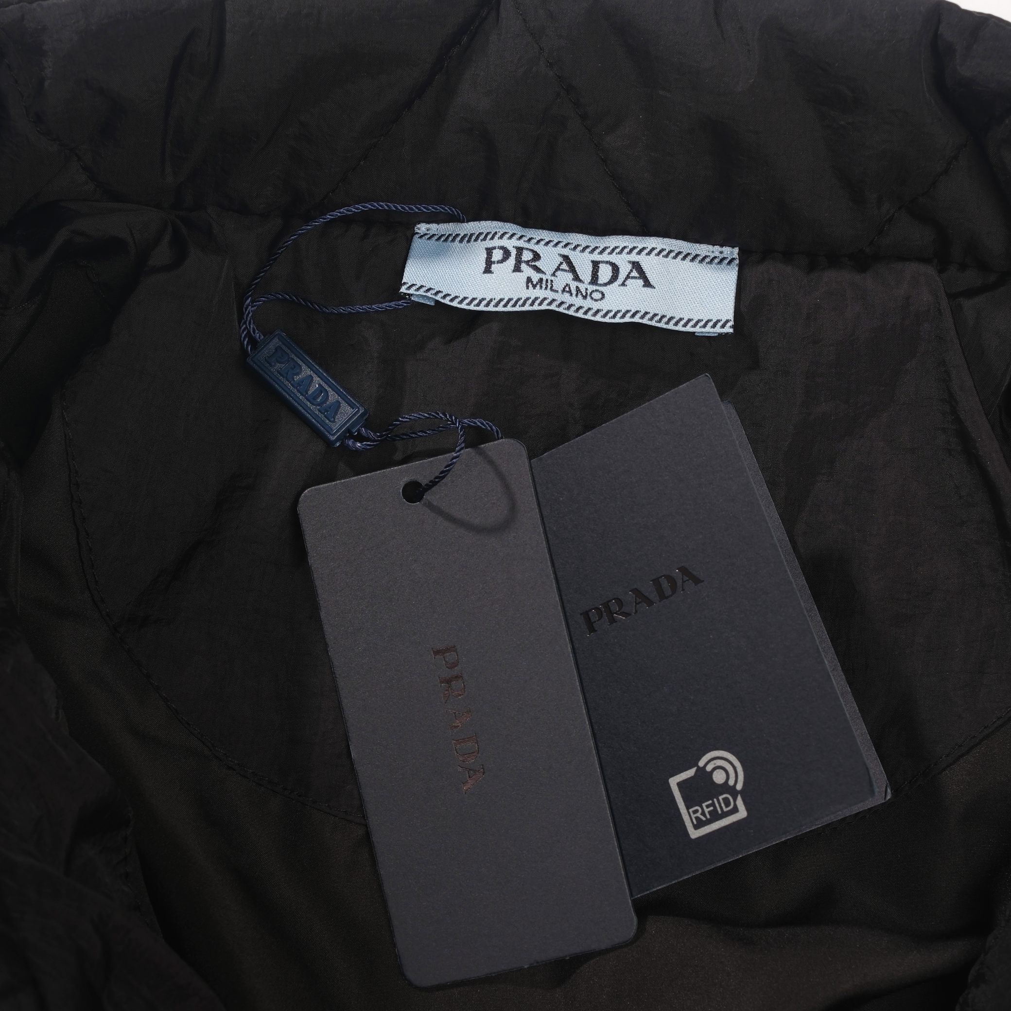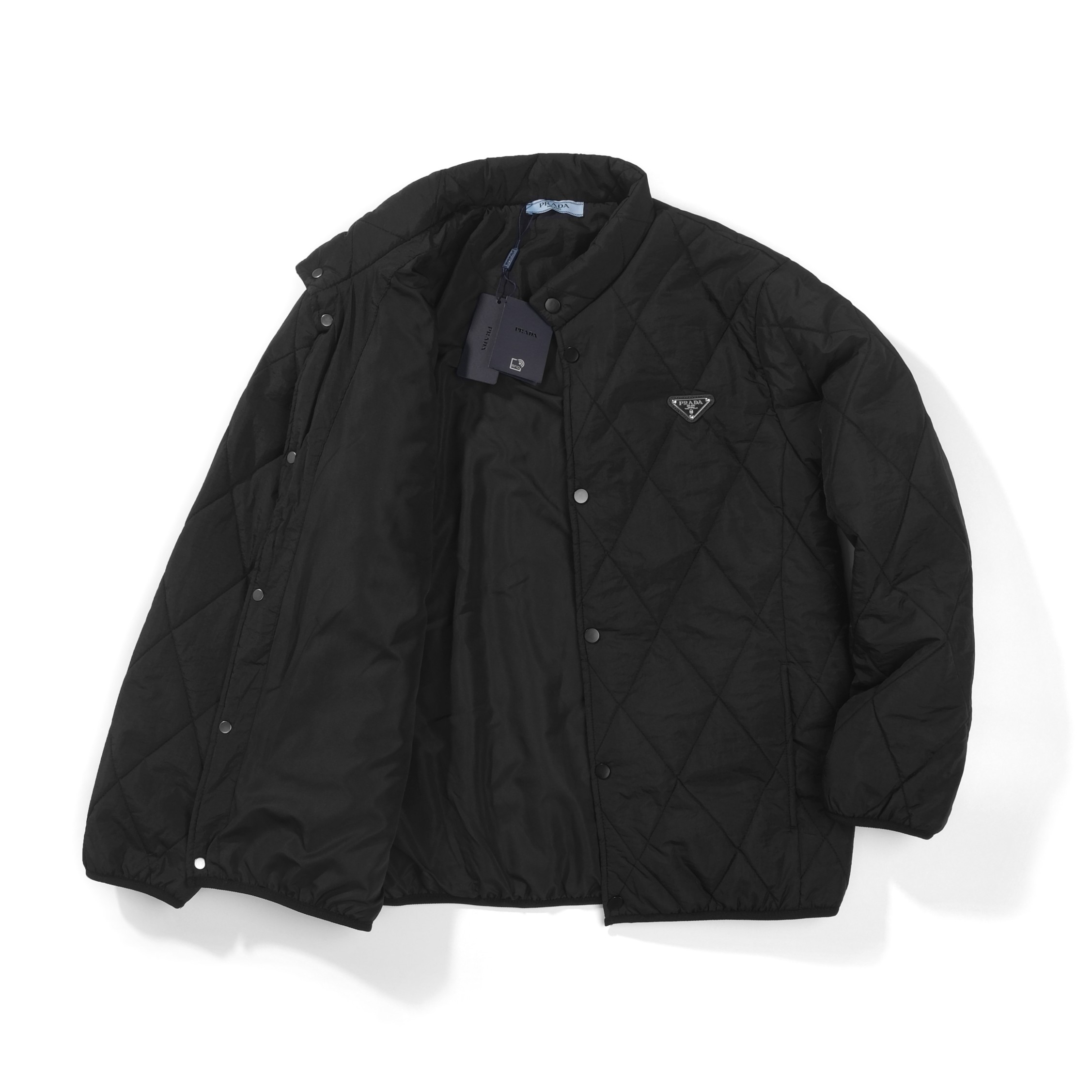 供 PRADA普拉达经典三角皮标轻便菱格棉服