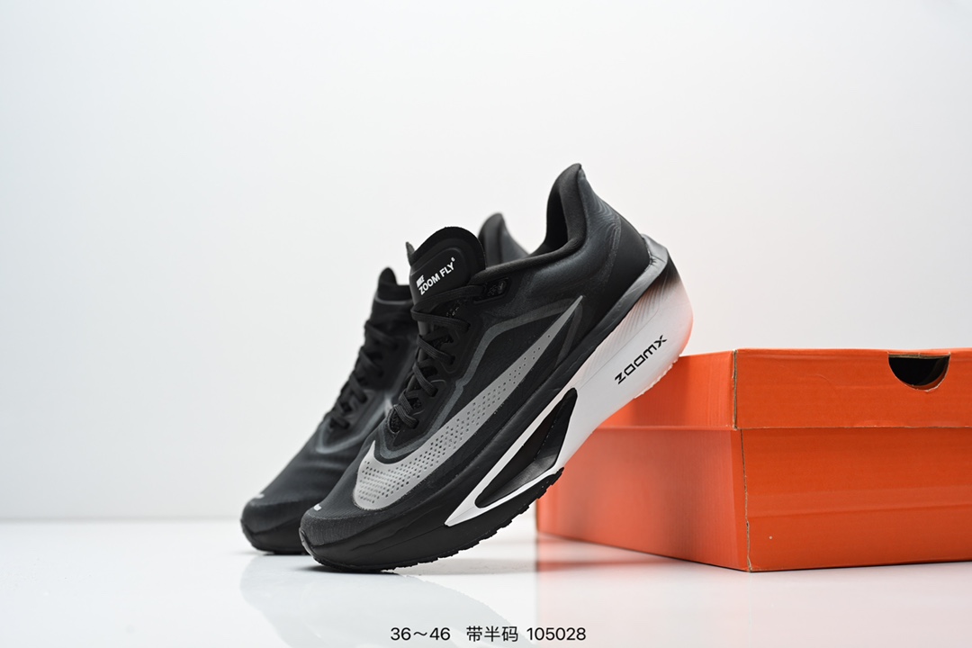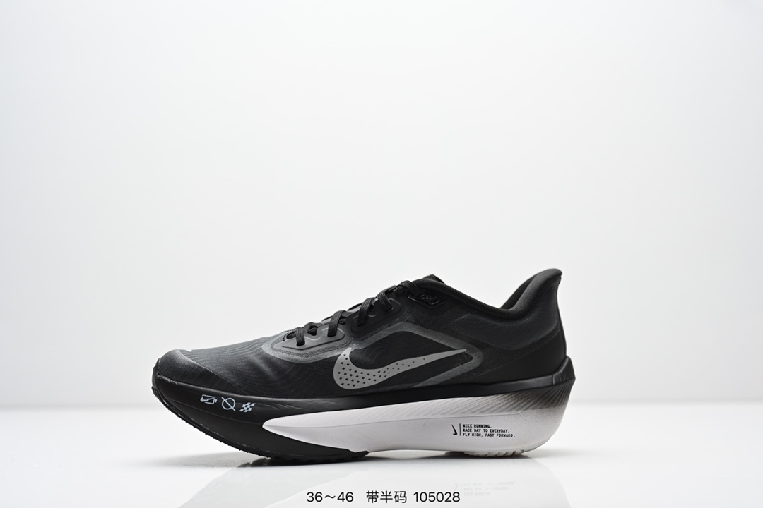 NIKE耐克Zoom Fly 6 马拉松碳板米黑跑步鞋男女同款运动鞋FN8455 001春新款ZOOM FLY 6 PRM缓震轻便跑步鞋 这款鞋在继承了 Nike Zoom Fly 5 的基础上 承诺为跑者带来更上一层楼的体验 它还继承了 Nike Vaporfly 3 和全新 Nike Alphafly 3 的设计风格 展现出更为简约和轻盈的外形 尤其是鞋跟部分 进行了重大改造 不仅提升支撑性 也增加了美观度 在 ZoomX 泡棉成功的基础上 Zoom Fly 6 引入更进一步的缓冲系统 为软硬适中和快速响应之间提供更好的平衡 满足长距离跑和短跑的需求 随着鞋跟和整体结构的可能改进 Zoom Fly 6 为跑者提供更好的稳定性和舒适度 这对于需要适应各种地形和跑步条件的跑者来说尤为重要 对于鞋面的改良 使用新的材料或构造技术 以实现更好的贴合和透气性 这将进一步提升鞋子的舒适度和性能