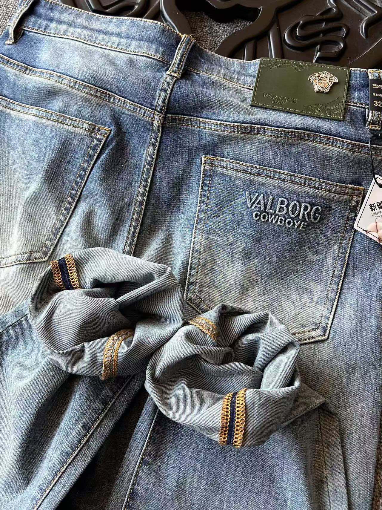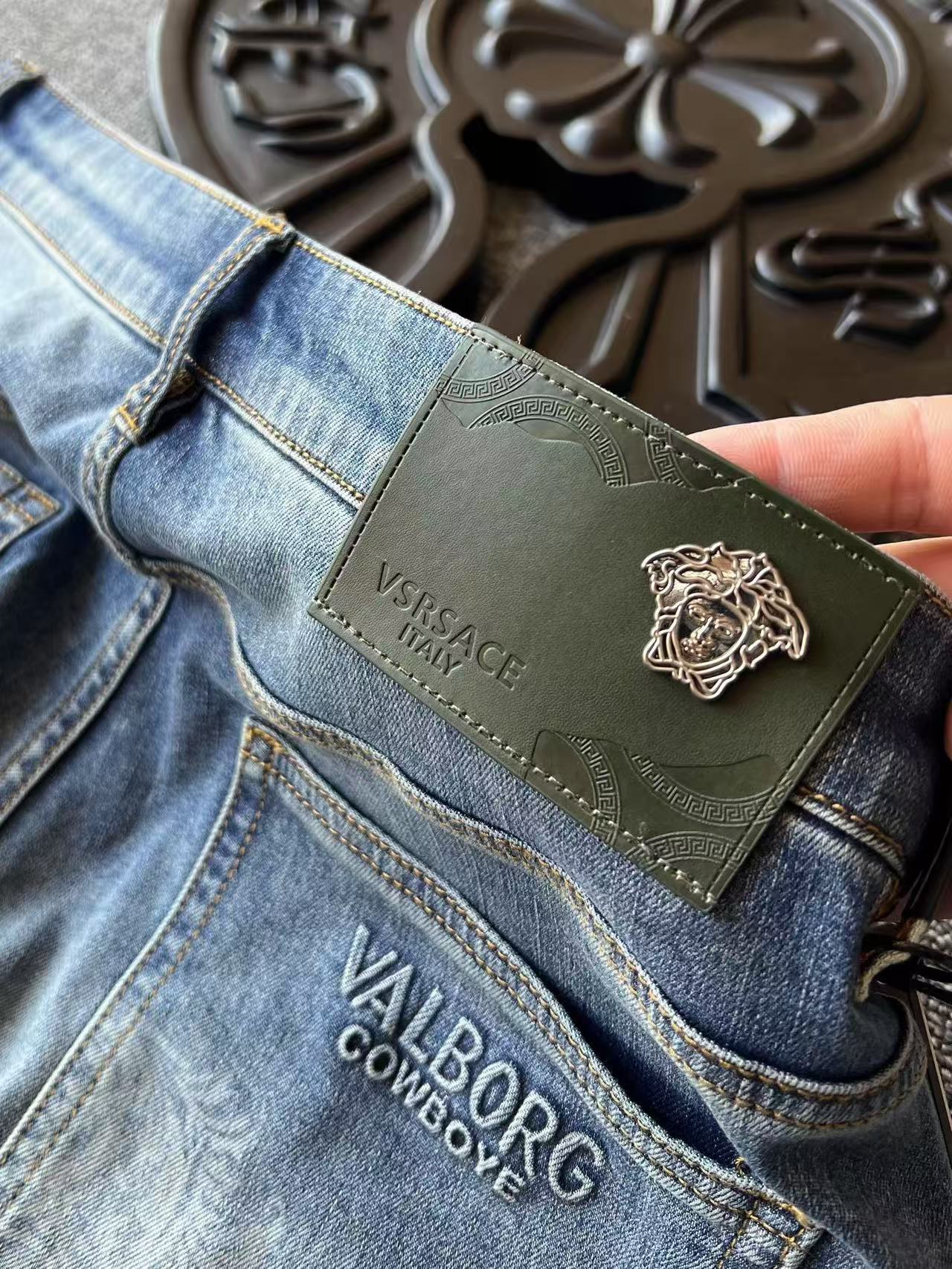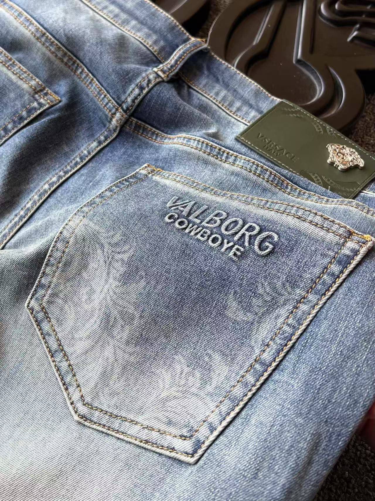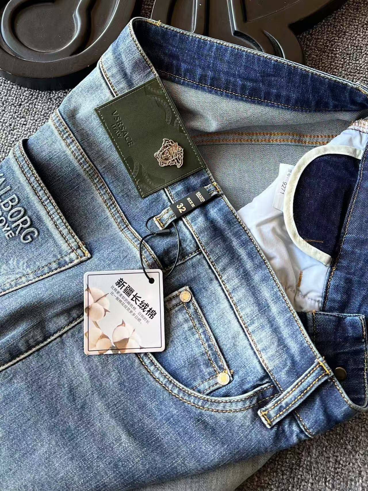 人气爆款 Versace 范思哲美杜莎专柜顶奢重工水洗修身牛仔裤 恒隆在售万元级 款号 9271