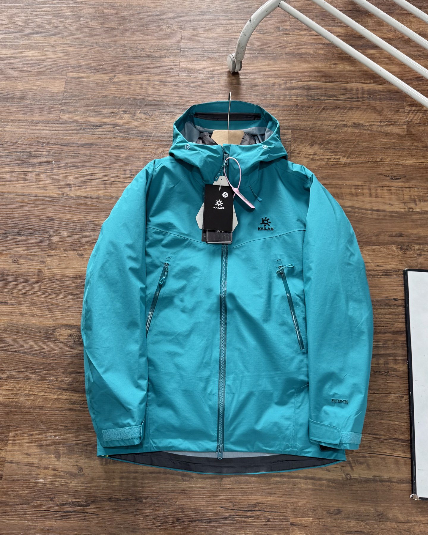 立体剪裁在肩部 肘部预留充足活动空间 背负重包时也不会束缚动作 风帽后侧设有抽绳调节系统 暴雨时收紧可防止雨水糊脸 袖口采用钩环固定 大幅活动时不易移位