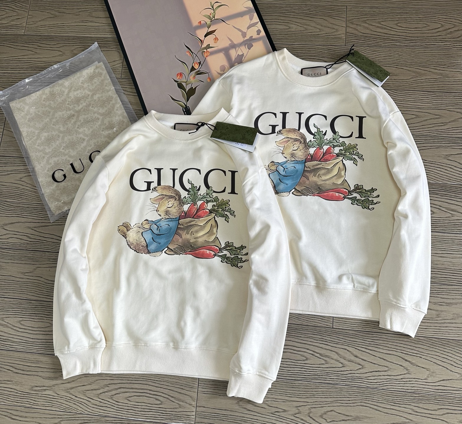 新款上新 主推限量爆款 推荐高版本Gucci 古驰秋季彼得兔石墨彩色爱吃胡萝卜兔子卡通男女情侣款圆领长袖卫衣 流氓兔彩色前福水印花 衣服印花怎么洗也不会掉落 双纱480G精梳全棉面料 衣服都是采用双针走线工艺 GUCCI超爆新款 秋季新款限定版情侣卫衣 不是好货不推荐 万年基础百搭绝对是最好的选择 多入手几件都不为过 面料和款式都很出色 版型正 人人都好穿 首先来说 超高品质 精密印花大标 重工艺 面料吸汗透气超级舒服 做工细致 款式简单大方 不啰嗦 版版型非常完美 不会局限身材 不论胖瘦都合适 超级推荐自留款
