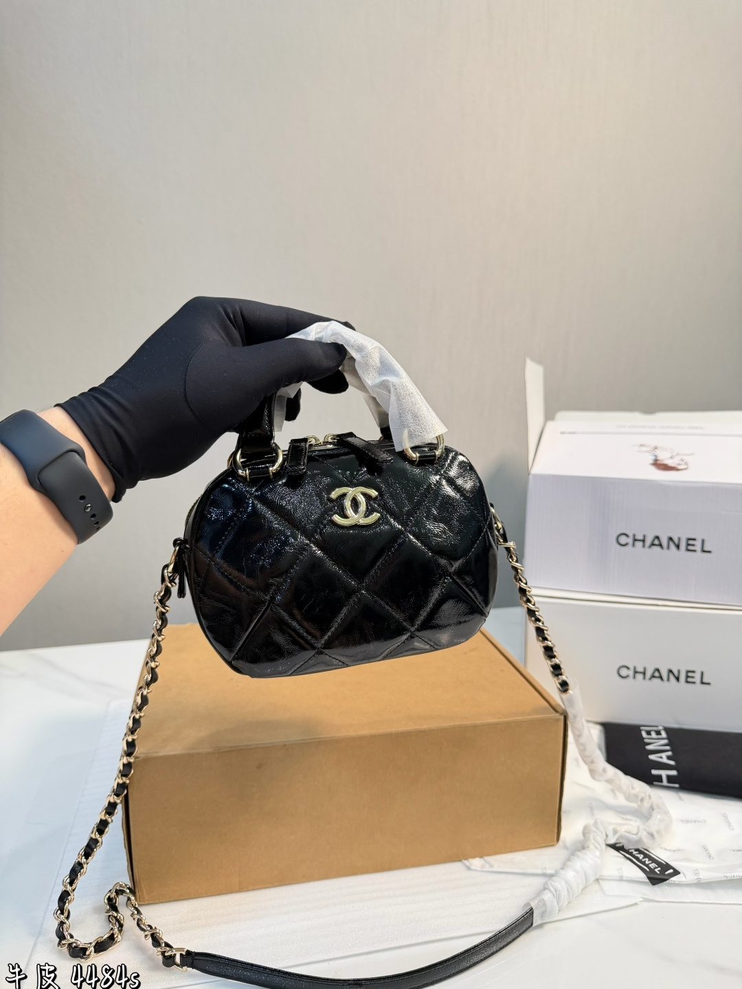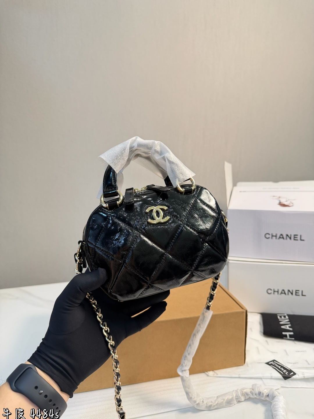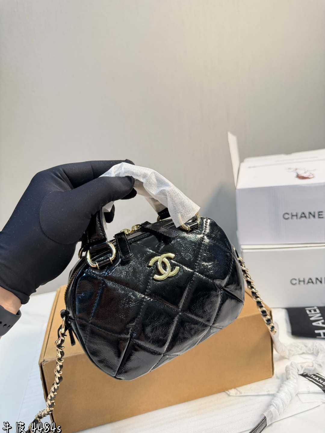礼盒包装 香奈儿25N迷你保龄球包 香奈儿25N系列迷你保龄球包 黑色漆皮 经典菱格纹 金属链条 双C Logo超有辨识度 尺寸18 13 7cm 小巧轻便 手提斜挎都OK 日常出街超百搭 漆皮光泽感满分 易清洁 链条可拆卸 造型多变 复古又时髦 秋冬搭配大衣毛衣氛围感直接拉满