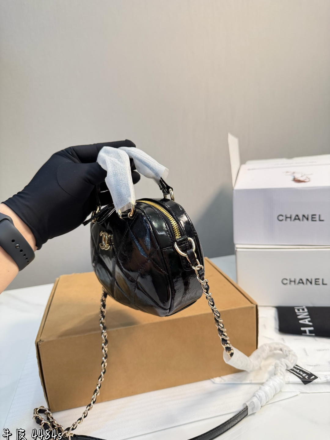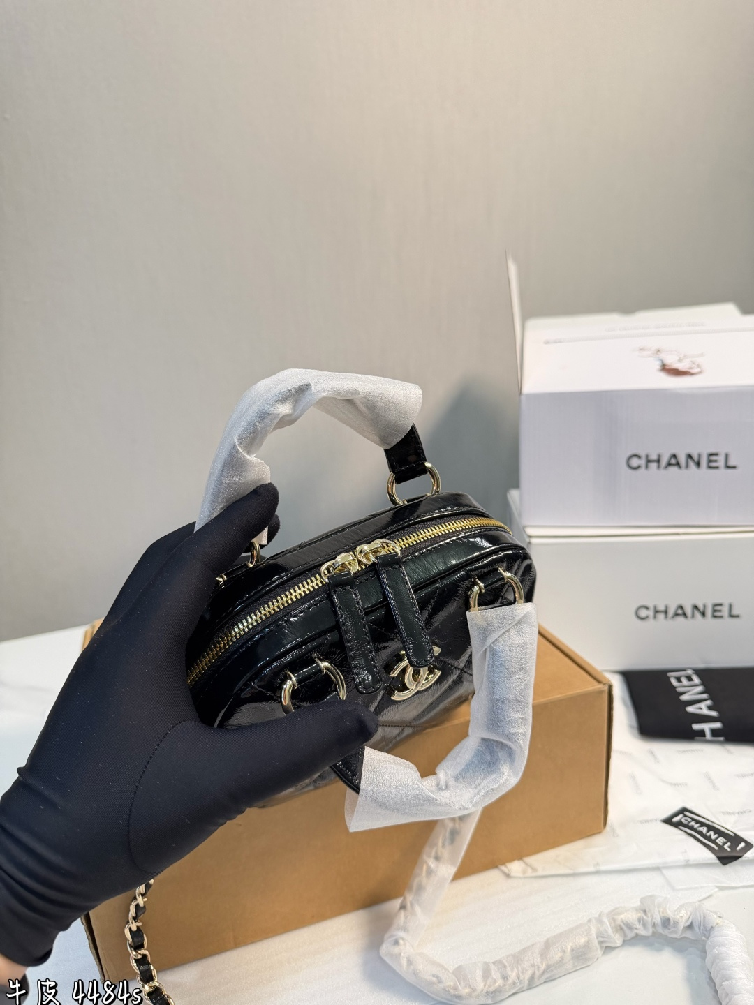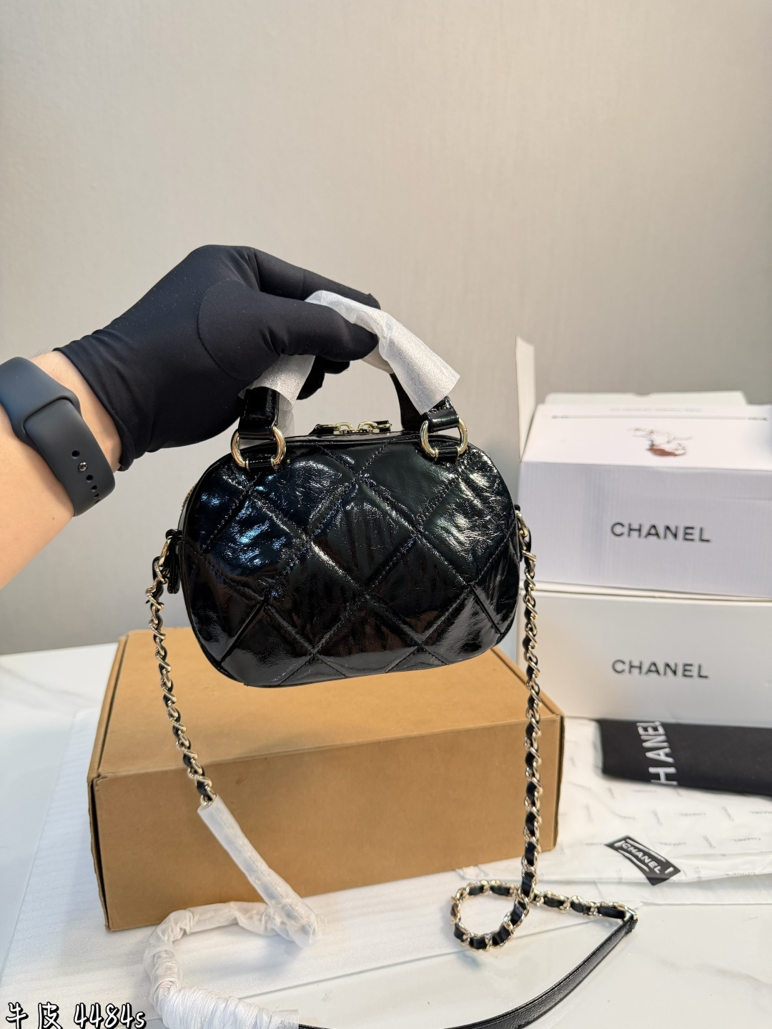 礼盒包装 香奈儿25N迷你保龄球包 香奈儿25N系列迷你保龄球包 黑色漆皮 经典菱格纹 金属链条 双C Logo超有辨识度 尺寸18 13 7cm 小巧轻便 手提斜挎都OK 日常出街超百搭 漆皮光泽感满分 易清洁 链条可拆卸 造型多变 复古又时髦 秋冬搭配大衣毛衣氛围感直接拉满