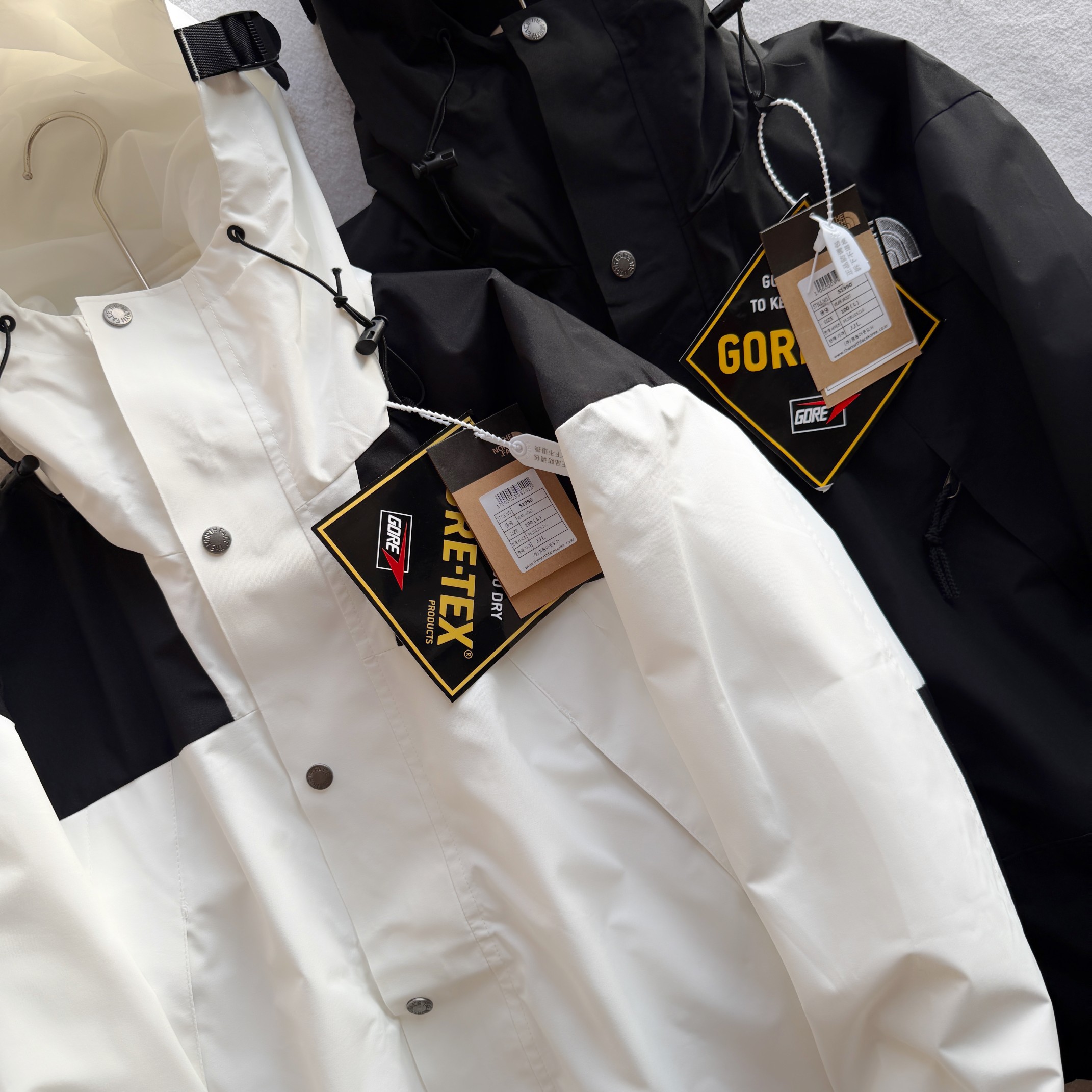 TheNorthFace北面1990Mountain Jacket 户外防水滑雪服两件套纯正版本 今年的滑雪服升级了所有的配件面料以及工艺品质 为了还原ZP的一切质感今年团队历经数月最终出货 纯正非阉割版本两件套设计 穿着跨度时间更广 所有辅料还原ZP oem代工厂出货 配码为原版六个尺码面料做工升级 防水为国际ISO标准90 ISO4 级别达到荷叶水珠滚动效果面料 高透层压织物Gore tex仿水透气薄膜 手感更佳舒适 刺绣 胸前标志品牌Logo为真正的进口百灵达绣花机 市面很多货说是进口刺绣实际根本达不到针数 冲锋衣代表作品1990年MJ是TNF的传统最爱 这款时尚夹克采用GT设计 为您的所有都市冒险而重新构想 提供无与伦比的防水和防风保护