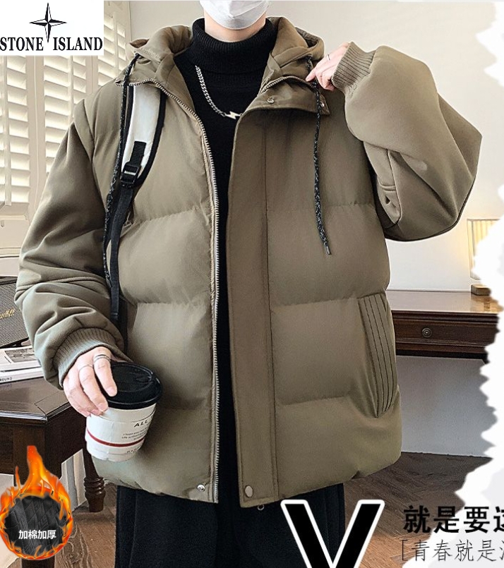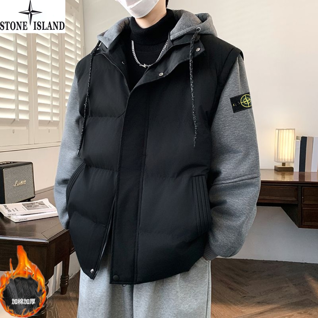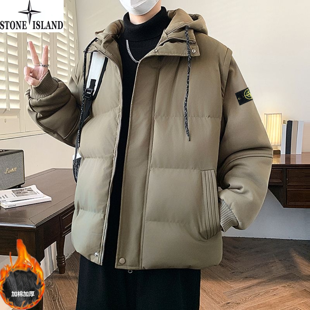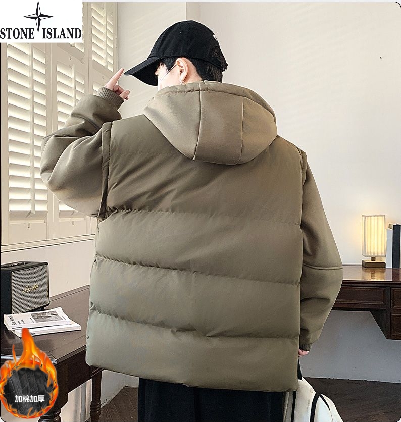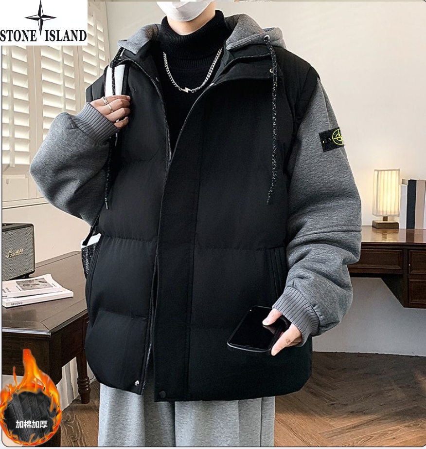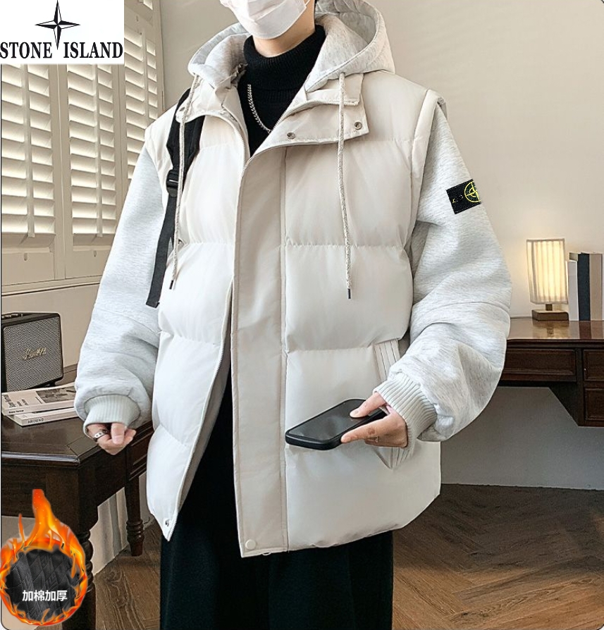 石头岛Stone Island冬季新款 男女同款连帽宽松拼接袖百搭休闲假两件帽领休闲棉衣 男士加厚面包服棉服外套