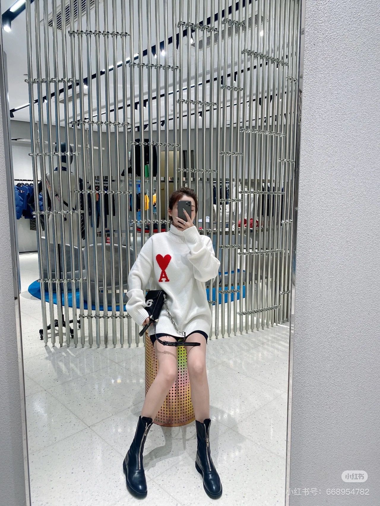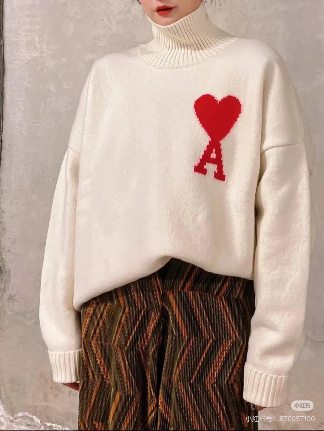 供 市场第一版本 Ami 爱心2025SS 经典款提花大爱心高领毛衣 整衣净重730G 市场最强厚度 不够克重可退 万年经典款 谁穿谁好看 百搭不挑人