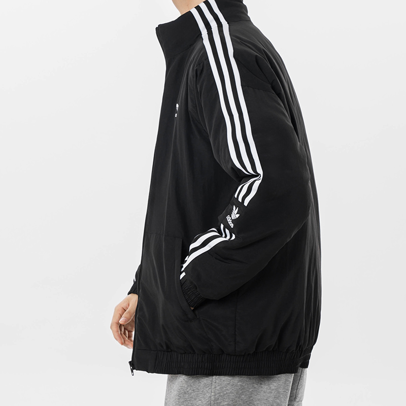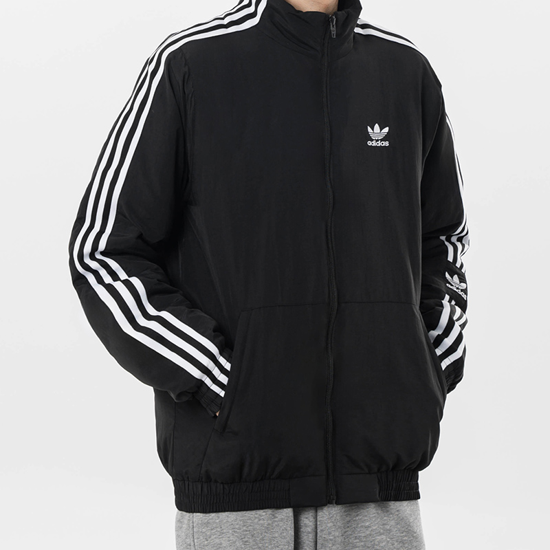 阿迪达斯三叶草这款棉服 以标志性三叶草标识唤醒复古运动记忆 侧边三条纹设计经典吸睛 立领拉链版型利落飒爽