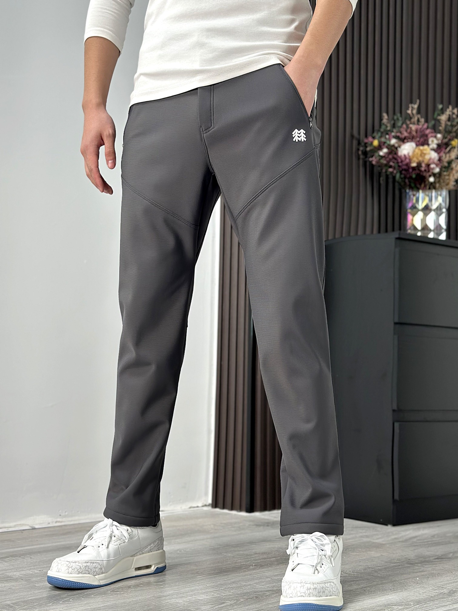 纳米防水 保暖透气 不闷热 面料防风防水加绒厚度可以跟绒裤一样厚度 冬季必备单品 面料复合摇粒绒 简约利落的梭织运动长裤 采用质感面料 面料平稳有质感 搭配REGULAR常规版型裁剪 上身舒适合身 适合通勤与日常等多场合商