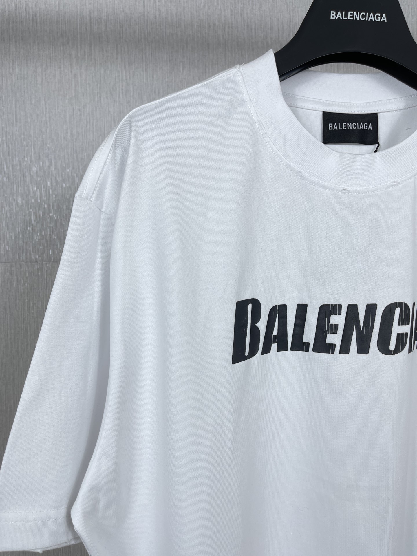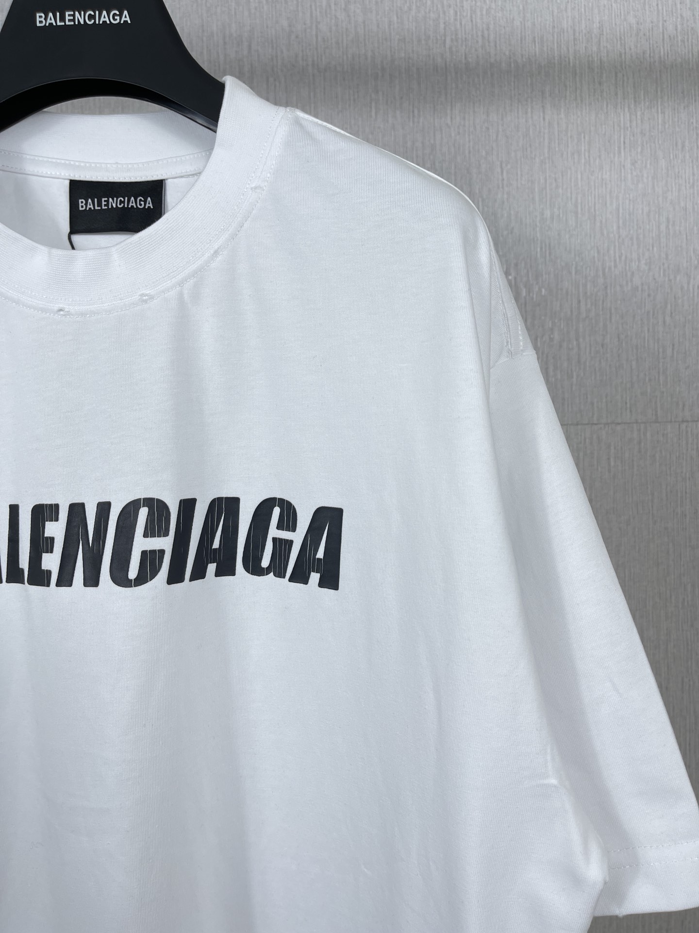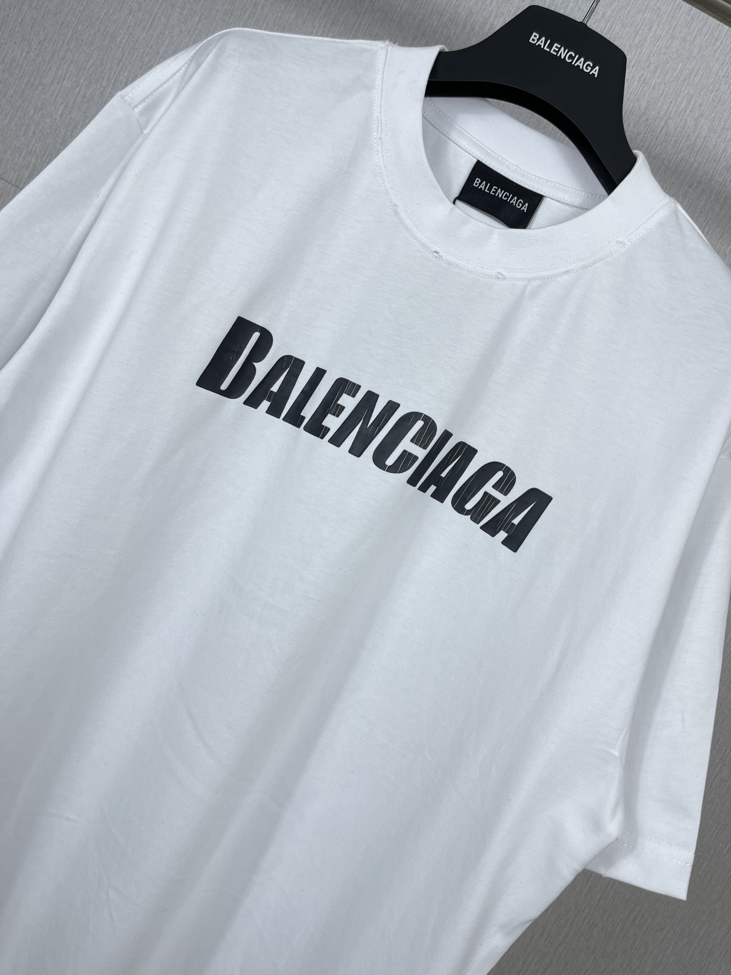 实拍图 顶级版本 官网品质 BALENCI GA 巴黎 2023新款 经典字母LOGO印花做旧磨烂短袖T恤 砖柜同步 面料采用巴黎ZP定织定染全棉双纱紧密棉 克重260克 布面干净 布纹清晰 柔软舒适 螺纹釆用定染无色差 经典图案采用环保进口材料印花 精密印花网板 字母清晰 效果立体 还原砖柜 成衣多位手工磨烂做旧 巨别市场通货 欢迎对比 版型釆用OS宽松落肩版型 男女同款