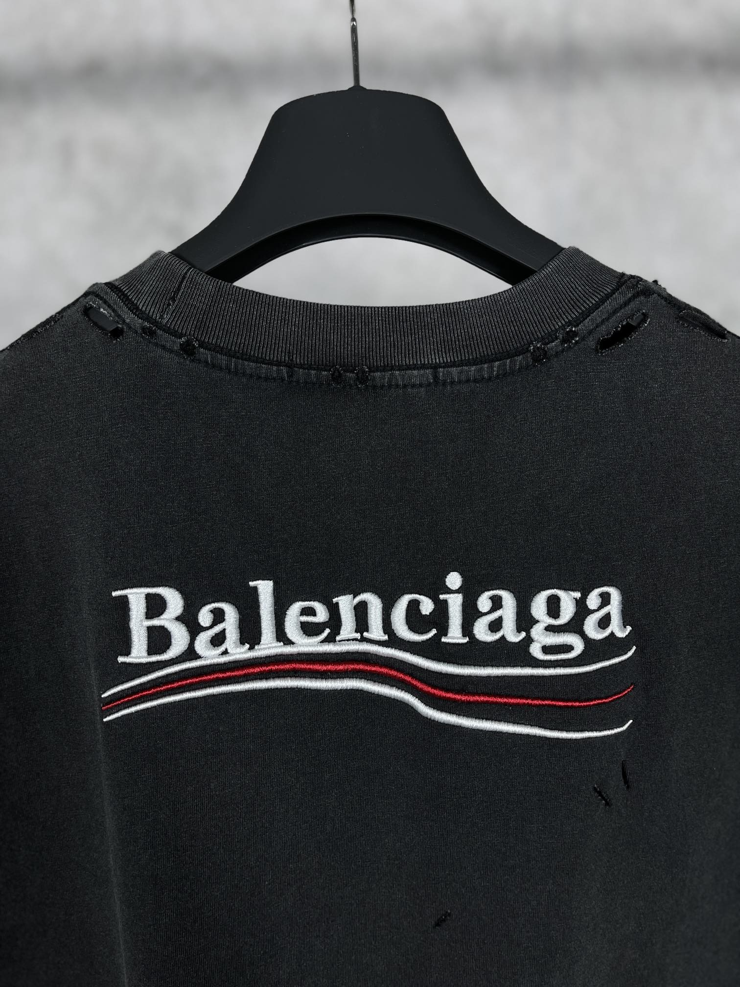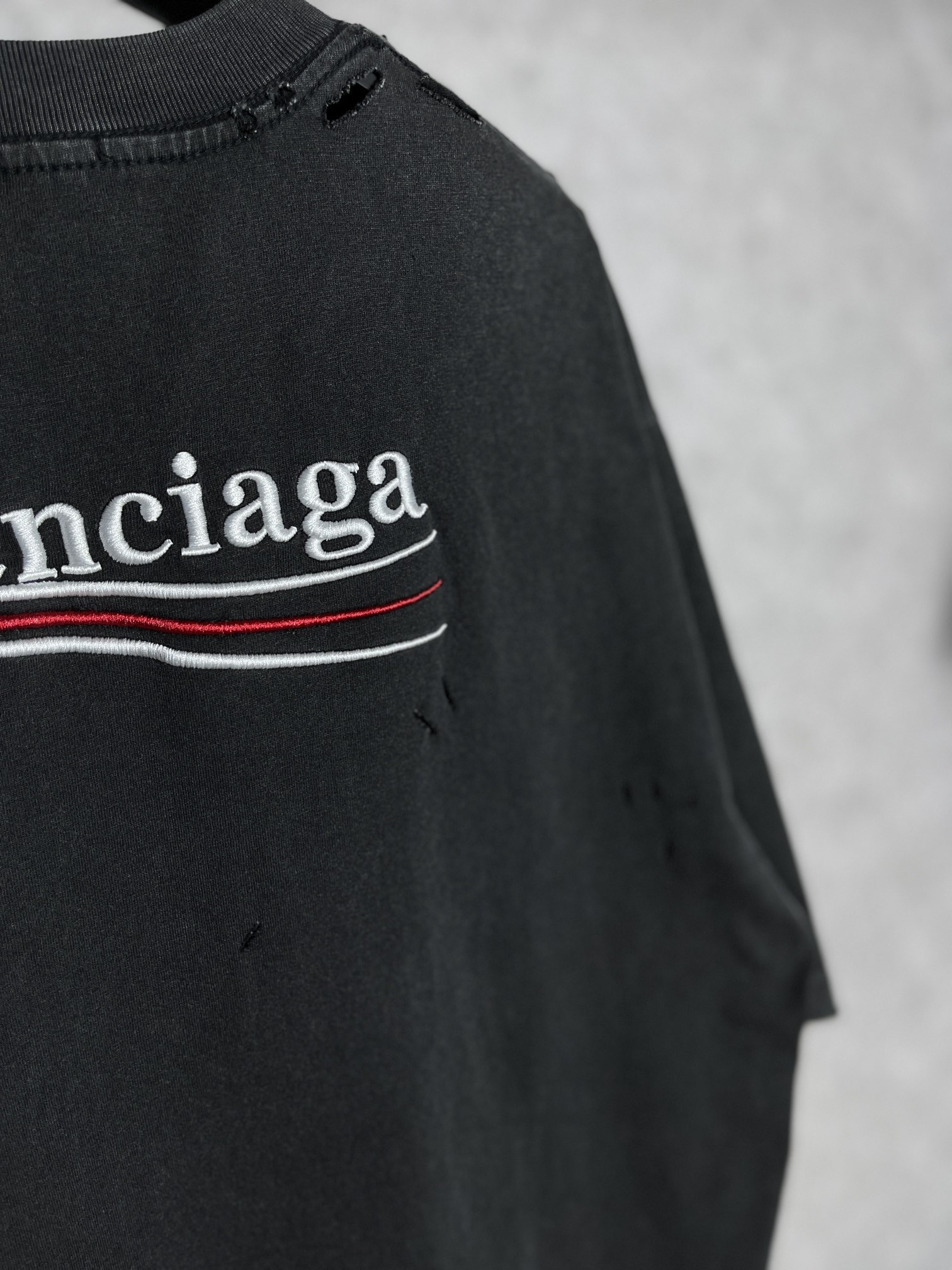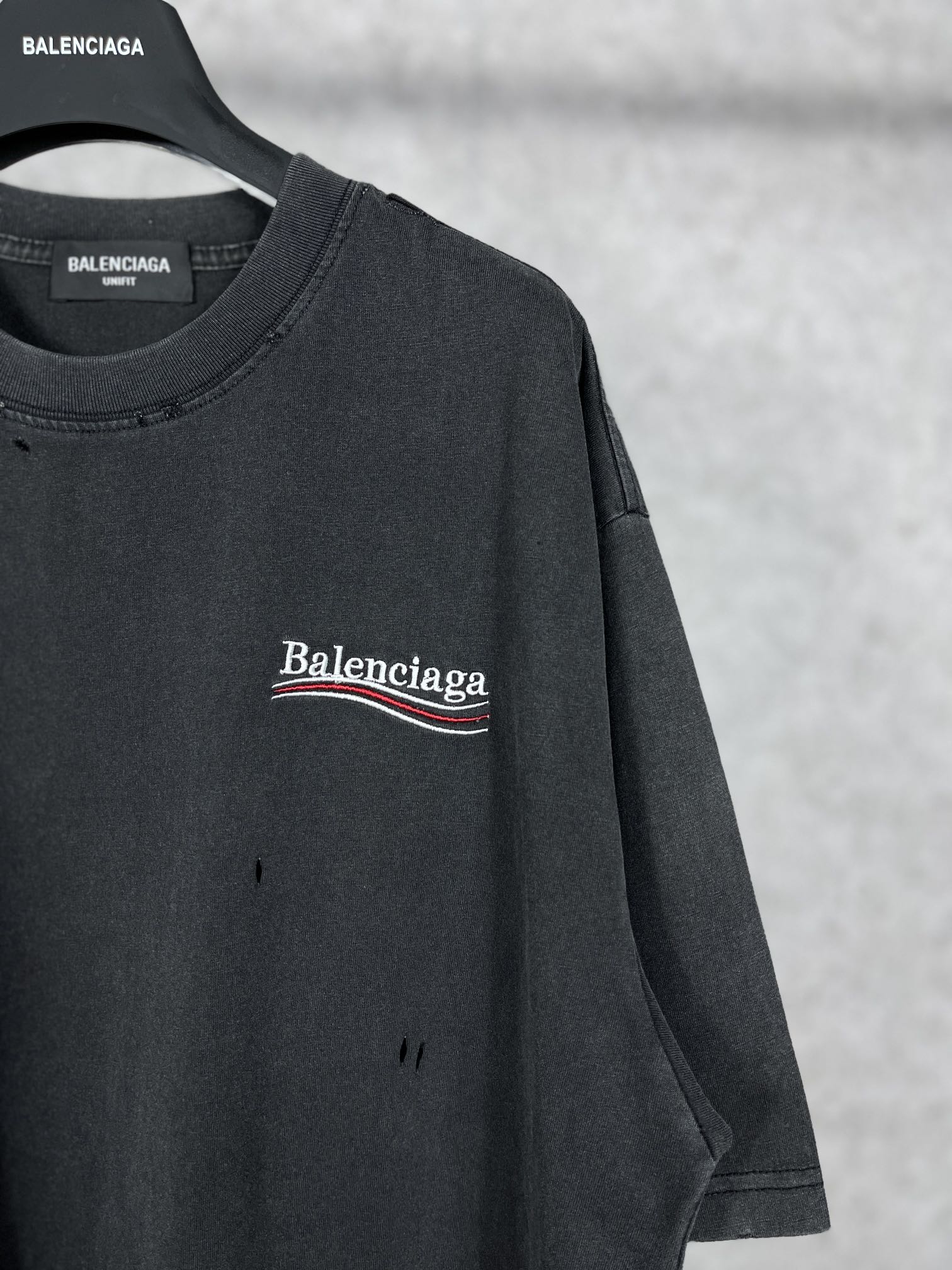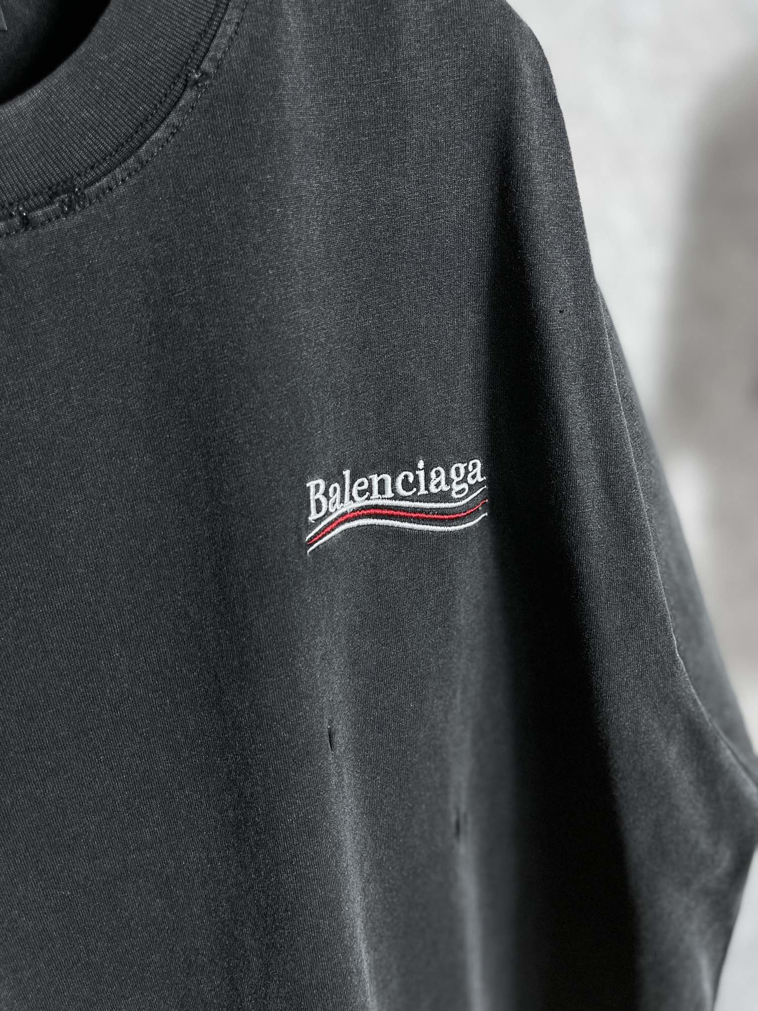 实拍图 顶级版本 官网品质 BALENCI GA 巴黎 可乐刺绣水洗做旧短袖T恤 砖柜同步 面料采用巴黎ZP定织定染全棉双纱紧密棉 克重260克 布面干净 布纹清晰 柔软舒适 螺纹釆用定染无色差 经典图案采用进口田岛绣花机刺绣 线条精密 效果立体 还原砖柜 成衣超重工艺水洗做旧 手工磨烂 巨别市场通货 欢迎对比 版型釆用OS宽松落肩版型 男女同款