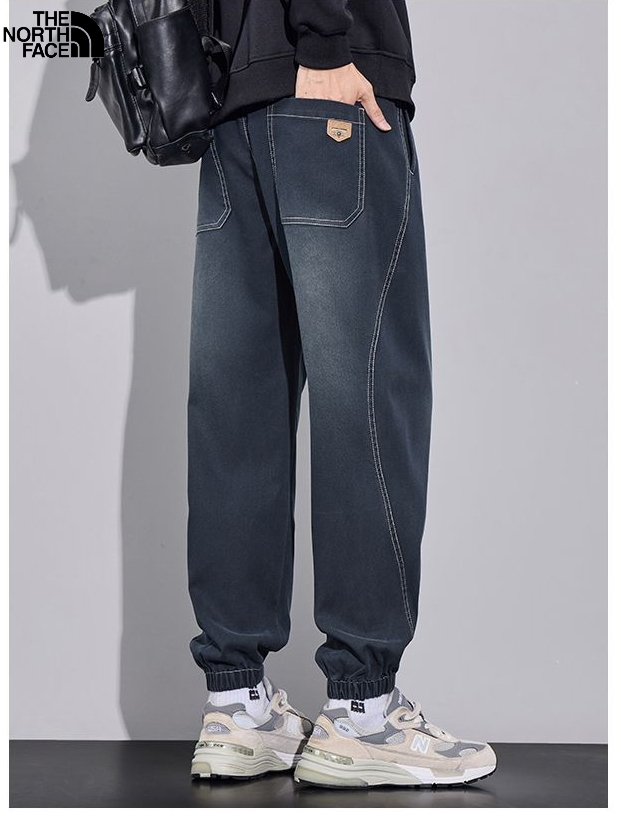 北面The North Face冬季新款 男士松紧腰抽绳显瘦显高百搭星空纹水洗牛仔裤 男士牛仔束脚裤 休闲裤长裤