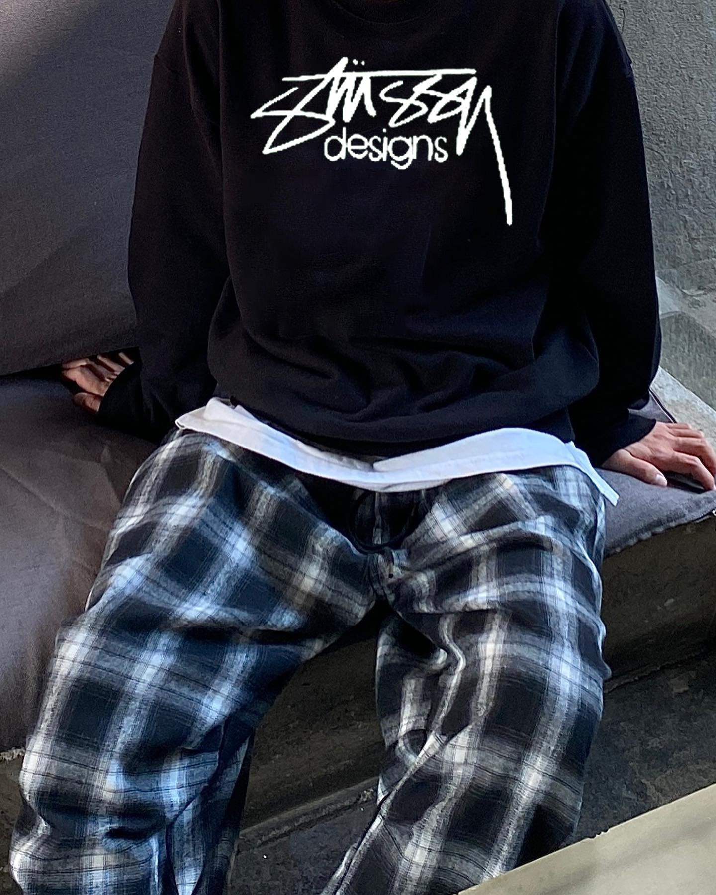 Stussy 斯图西草写字母情侣加绒圆领卫衣