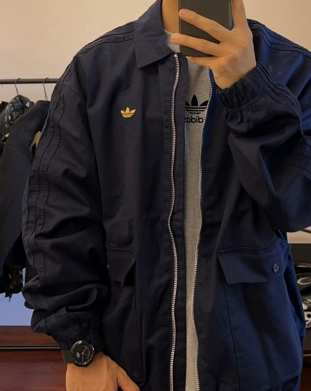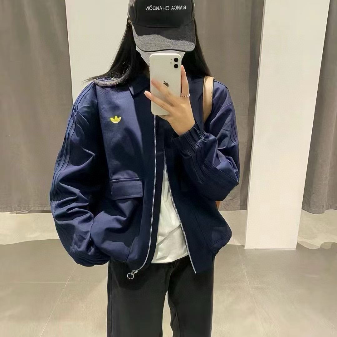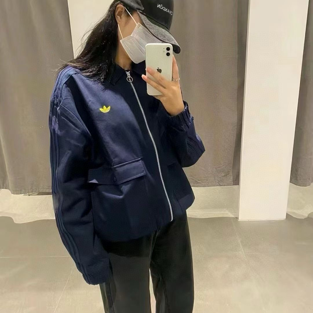 顶配工装风多口袋翻领夹克衫外套 万针刺绣logo三条杠宽松版型男士休闲外套秋冬季新款Adidas阿迪达斯三叶草翻领外套男士运动服情侣款男女同款女士夹克外套开衫 防风衣宽松版型夹克青年外套宽松版型学院风轻松驾驭 7583