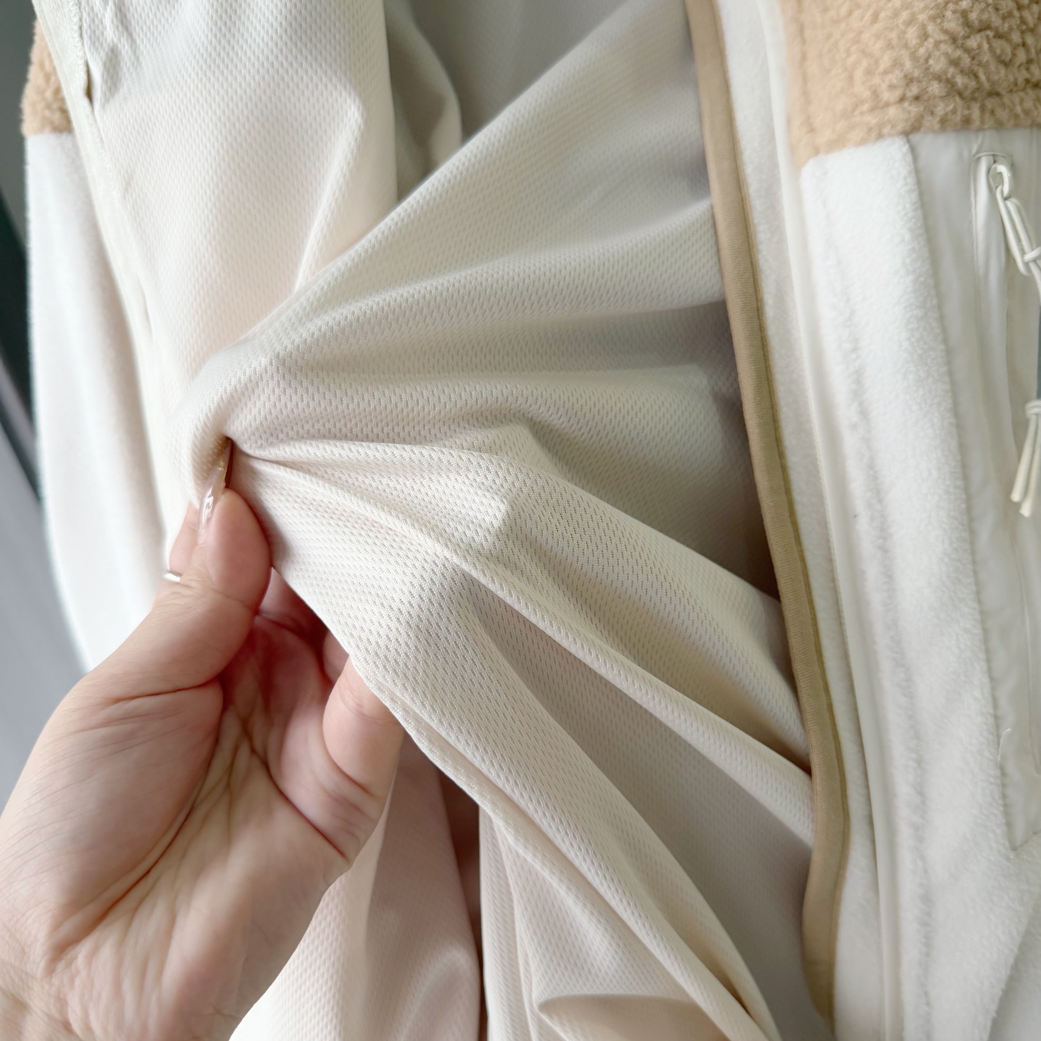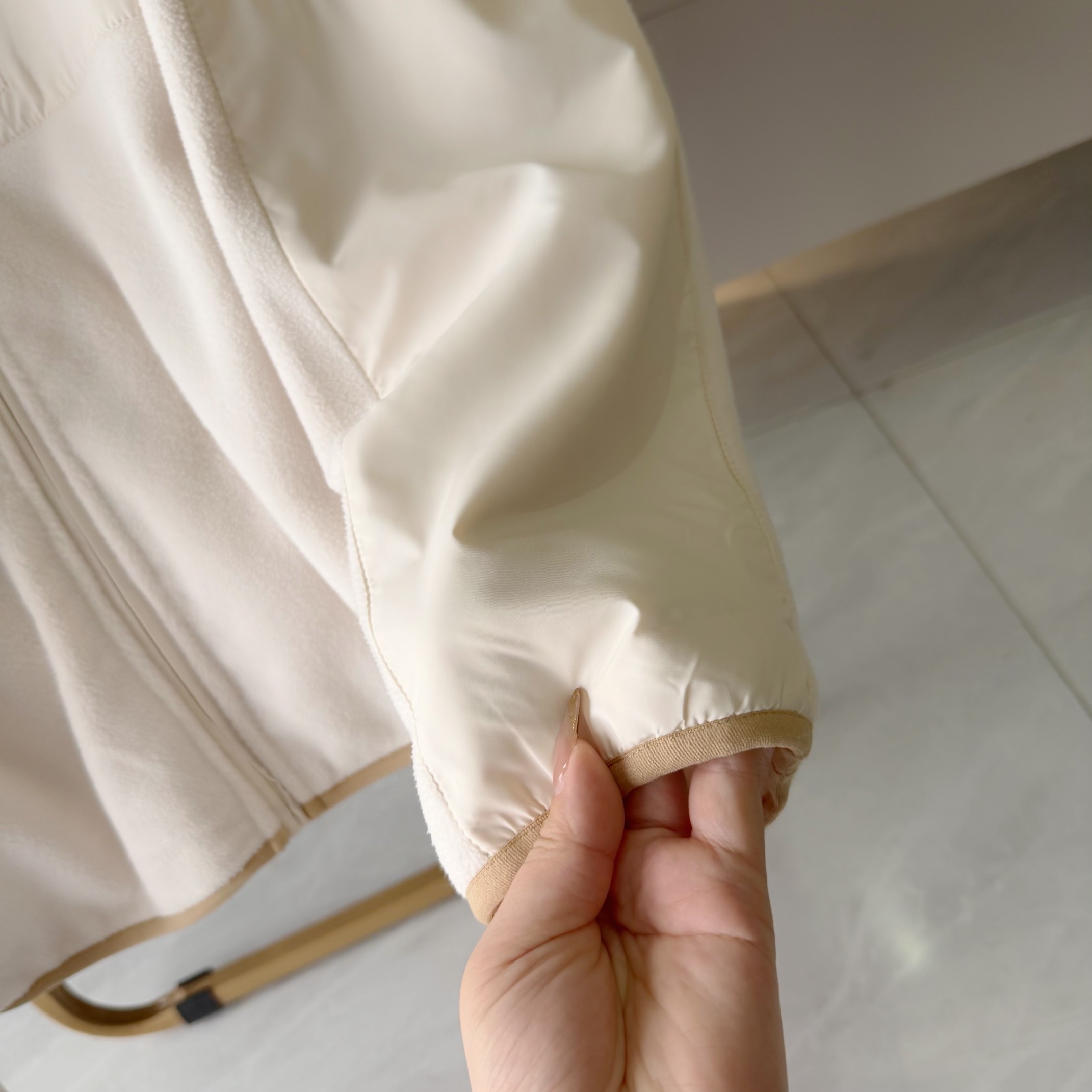 面料采用进口聚热环保再生复合摇粒绒面料 中前带拉链直立领的Vislon全拉链开合和接缝结构 袖口带有弹性包边具有出色的保暖性