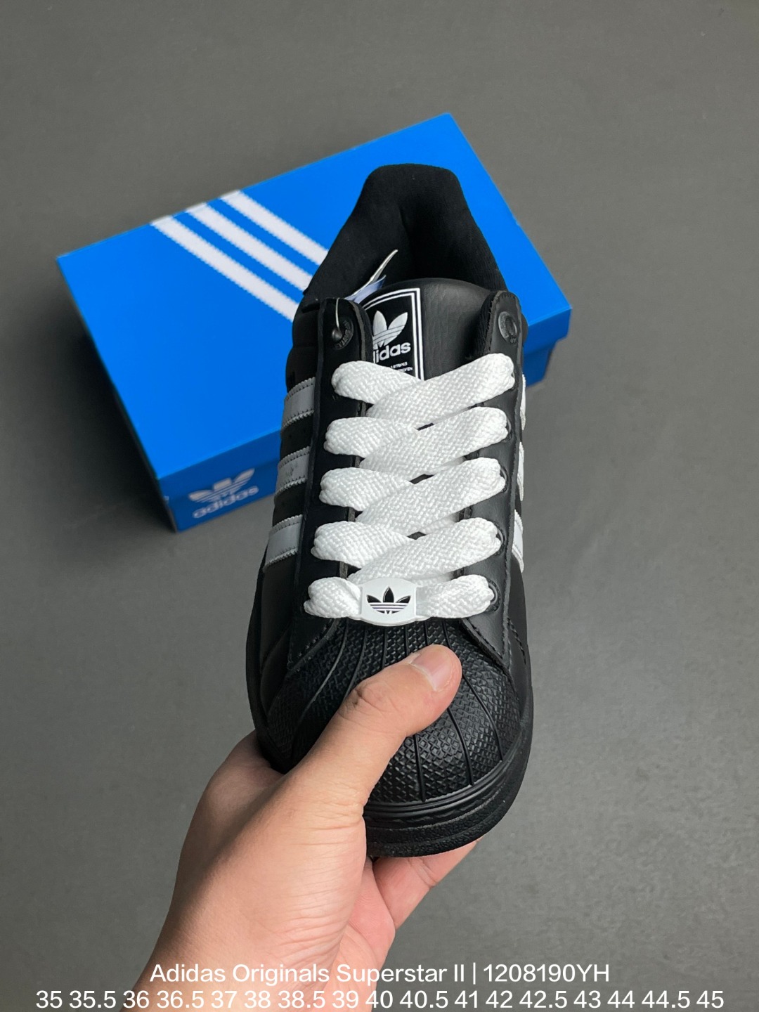Adidas 阿迪达斯 升级原楦原纸版开发 采用牛剖革鞋面材质 2020改良全包围鞋垫 正确2020版鞋底模具及扇贝头盖片阿迪达斯 三叶草Adidas Originals Superstar II 经典贝壳头系列低帮百搭休闲运动板鞋
