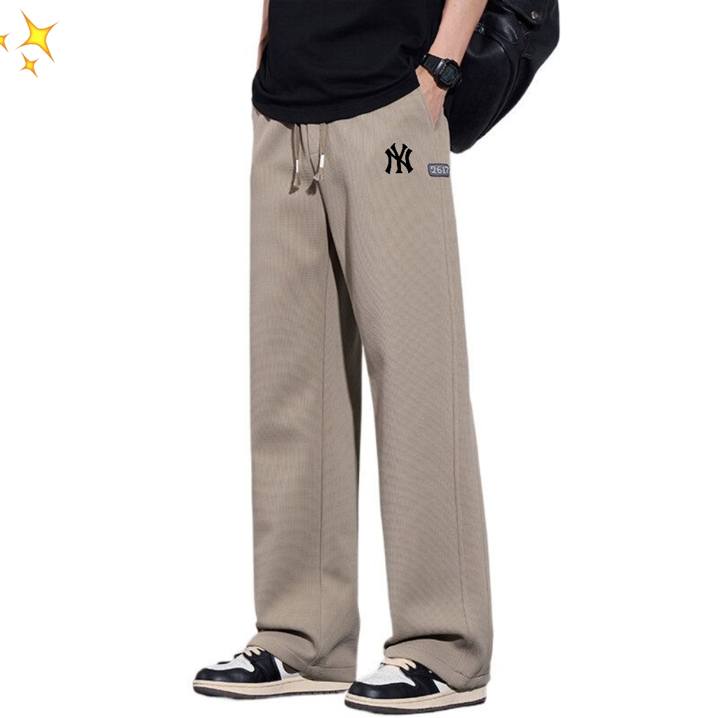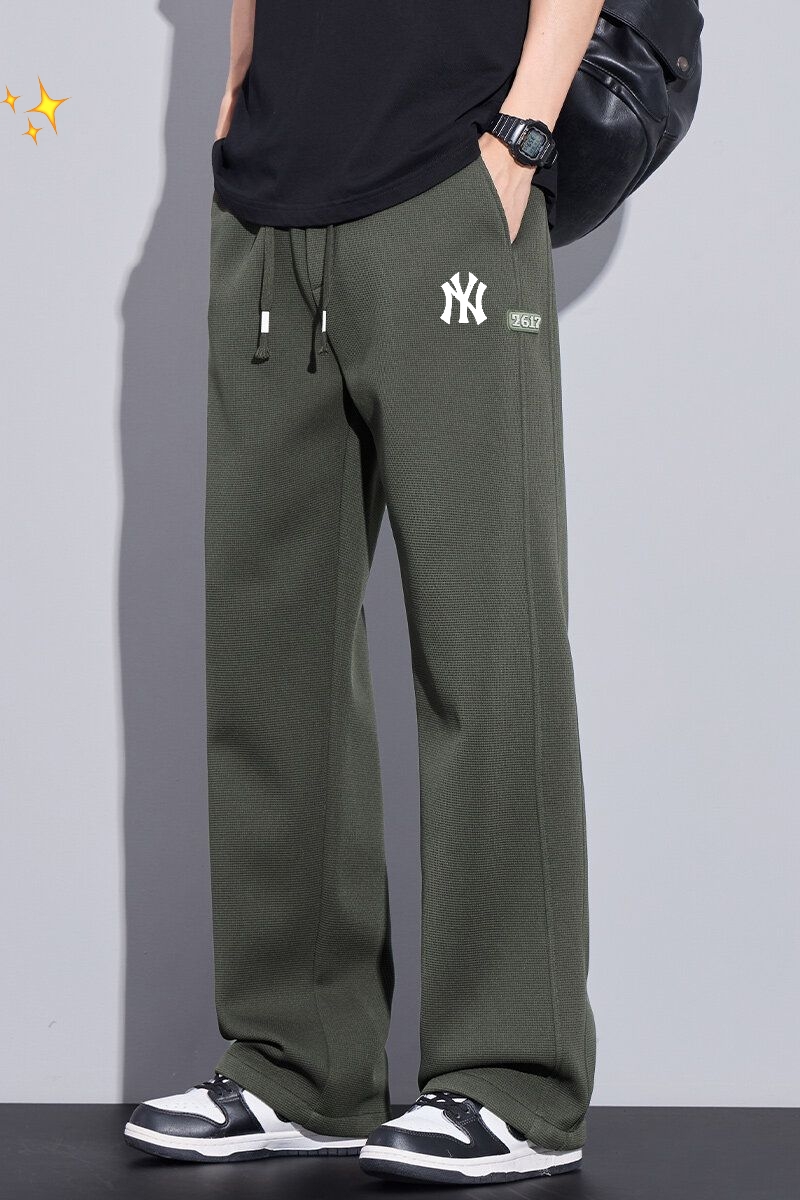 MLB洋基队25ss春夏新款主推华夫格直筒拖地裤卫裤 今年最流行面料 上身非常简单帅气有型的一款 男女情侣款都能轻松驾驭 面料质感非常柔软舒适 设计感十足 上身超级百搭不挑人 都能穿 版型宽松 适合各种身材 喜欢速入 颜色 黑色 灰色 卡其色 军绿 尺码 M 4XL