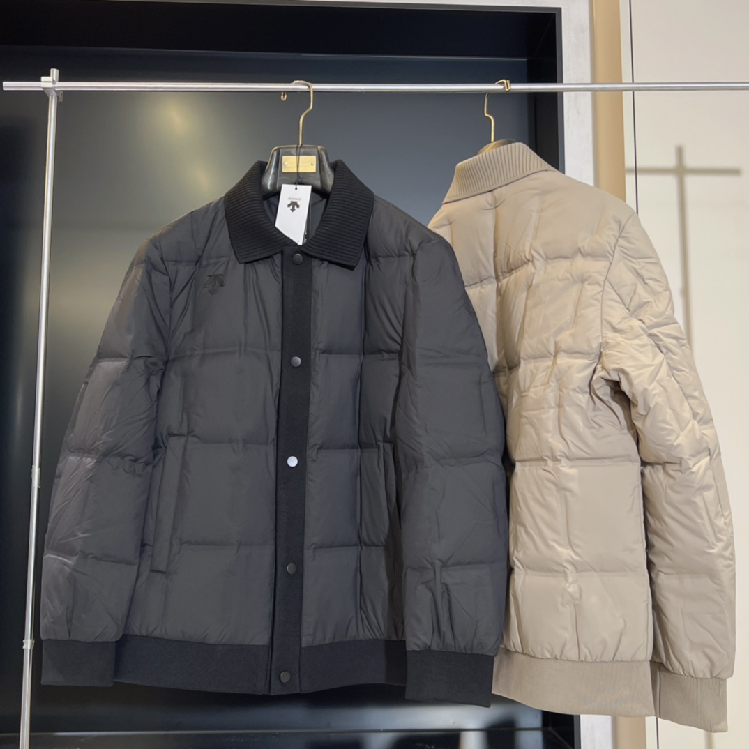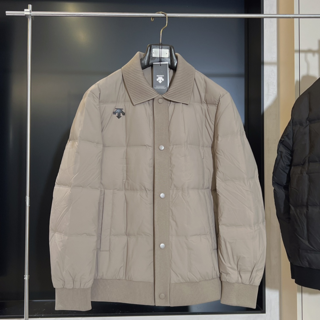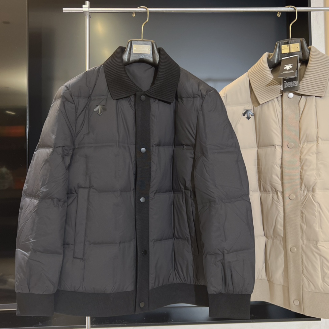 25新品 DESCENTE迪桑特 高端男士商务翻领针织蓬松羽绒服90绒三防外套