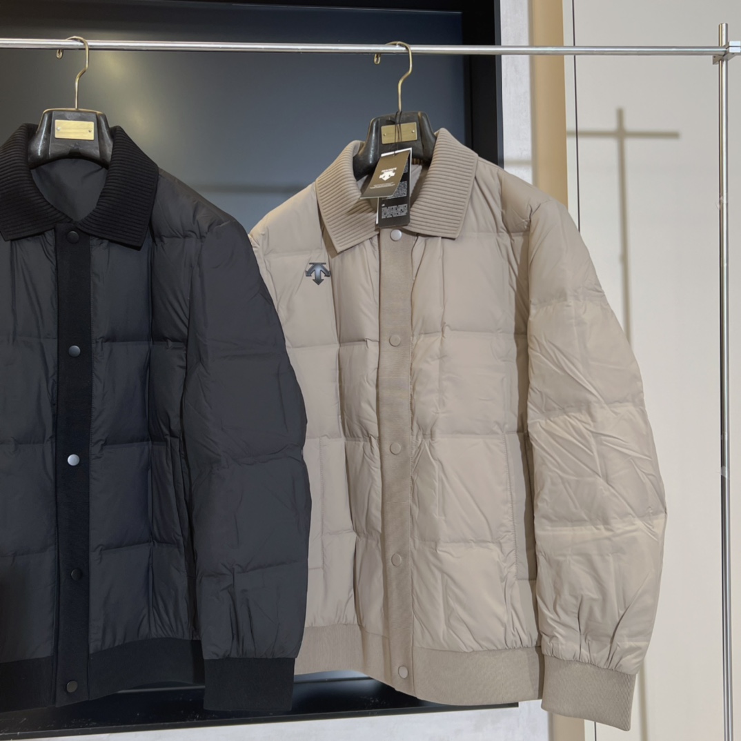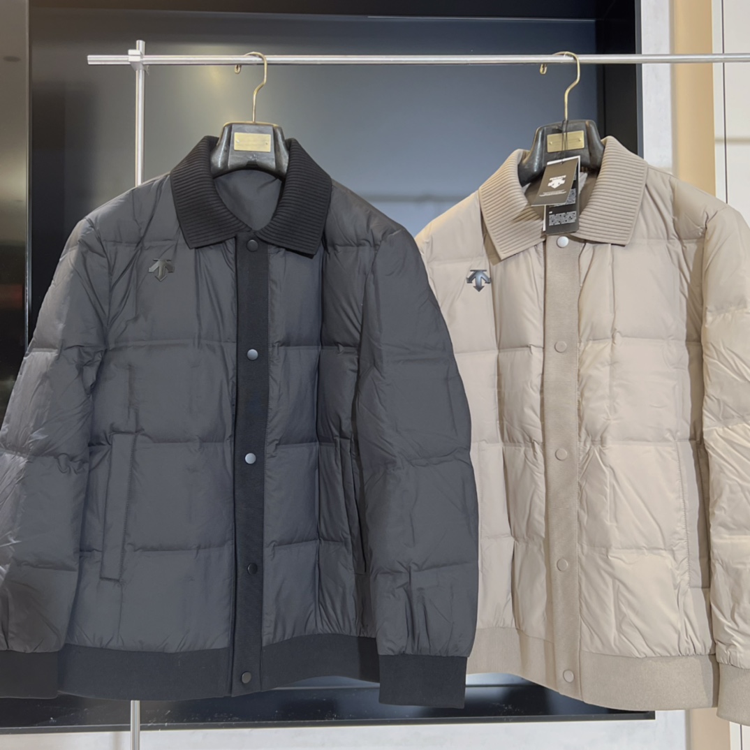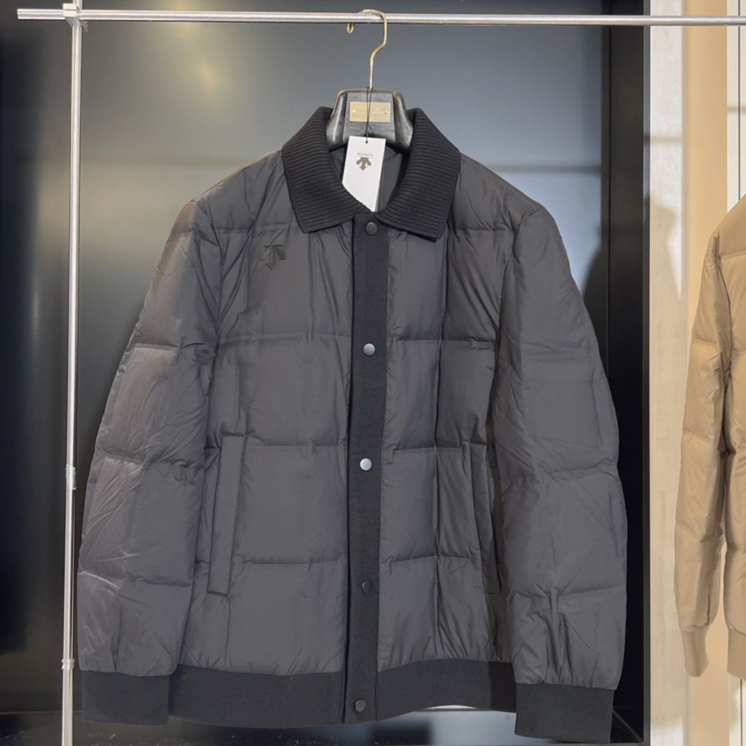 25新品 DESCENTE迪桑特 高端男士商务翻领针织蓬松羽绒服90绒三防外套