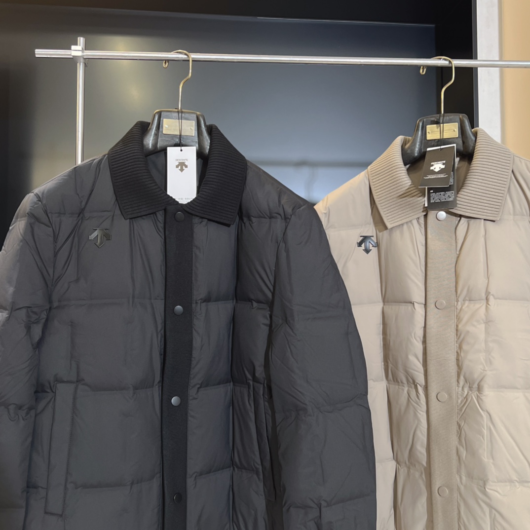 这款羽绒服是迪桑特高端系列 商务针织翻领羽绒服采用优质羽绒填充与防钻绒内里 这种面料具有防泼水防尘防风功能 外层面料高密防护 蓄热保暖 蓬松度高 不出绒保暖轻盈 细腻体感柔软 很好的在羽绒服内部保持理想的温度和湿度水平