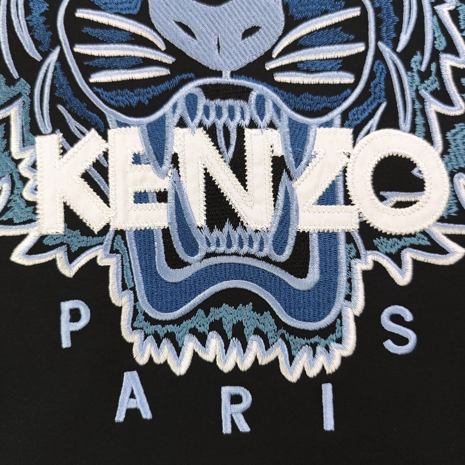 2025新款KENZO高田贤三经典大刺绣蓝色老虎头图案logo绣花休闲情侣加绒水貂绒卫衣 高品质 高密度重工刺绣胸前几十万针精工刺绣 细节相当到位 面料依然选用420g的纯棉加厚 超柔水貂绒 保暖透气 舒适吸汗 不是一般的棉绒能比的 做工细腻 这款冬日主打是KENZO PARIS系列的招牌 炸街神器 回头率超高 男女同款