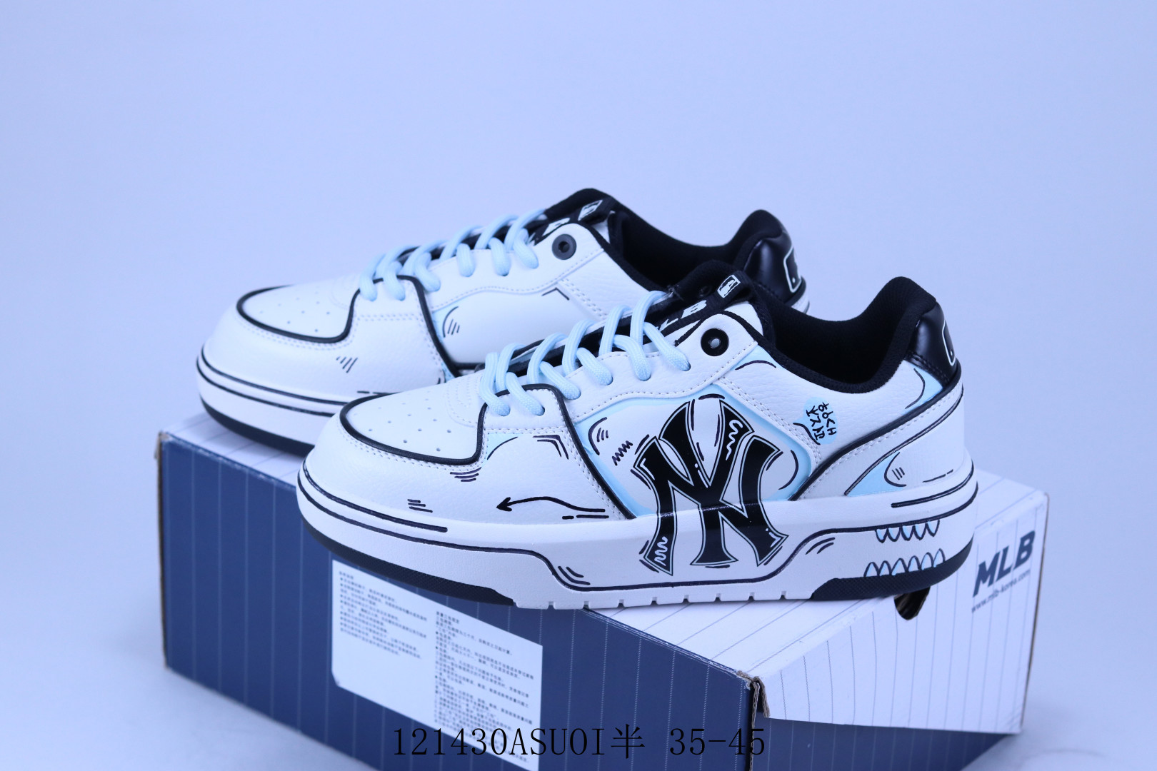 MLB Big Ball Chunky Canvas HI 复古厚底老爹风高帮百搭休闲运动慢跑鞋 涂鸦 121430ASUOI半 35 45