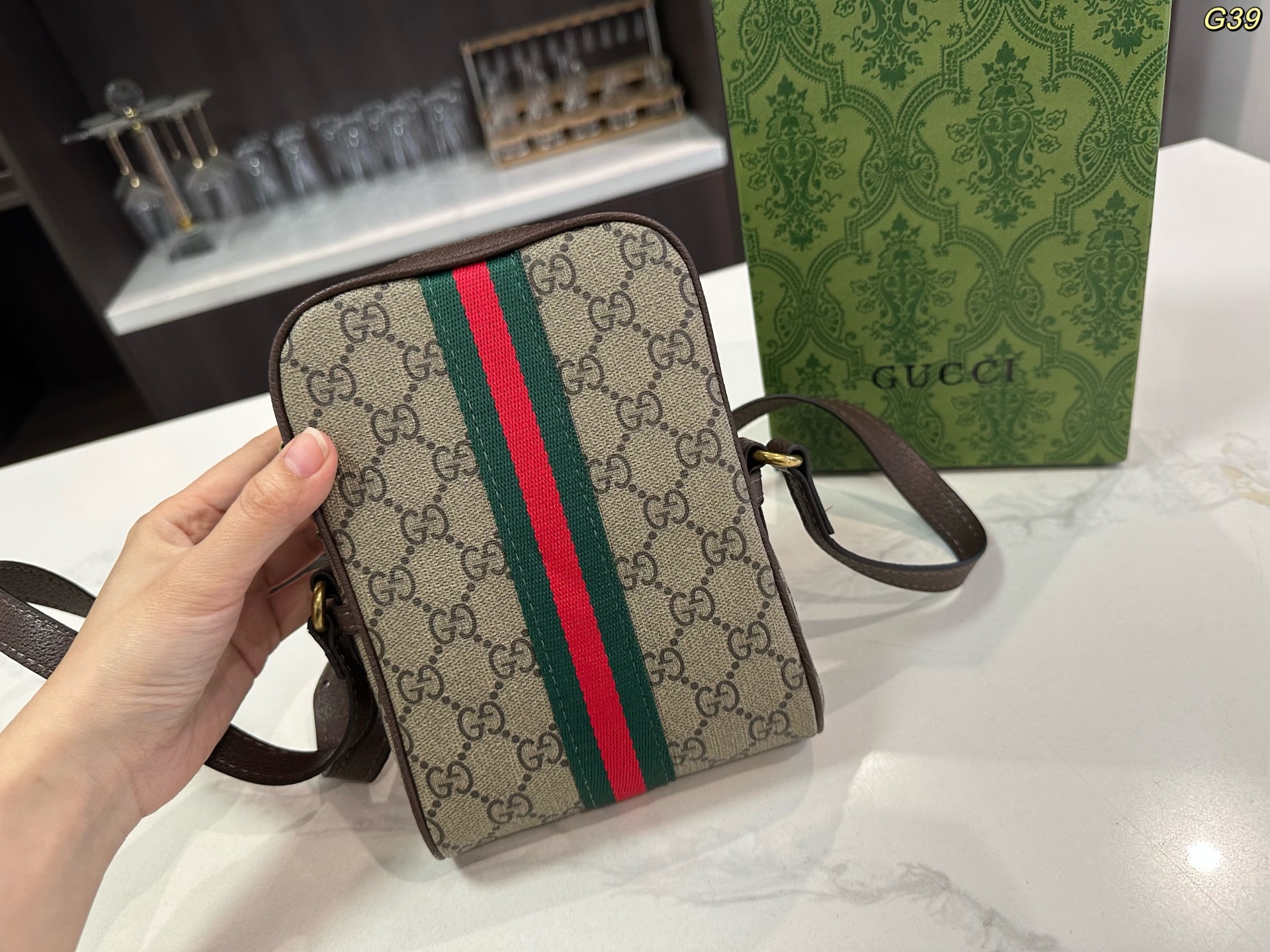 Gucci酷奇Ophidia系列GG肩背包男 女邮差包斜挎包手机包