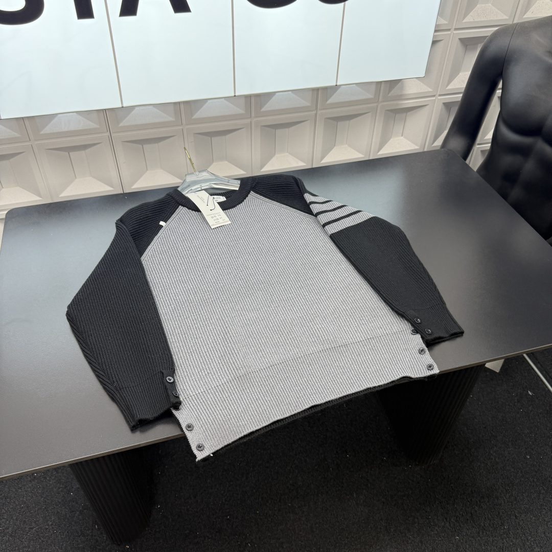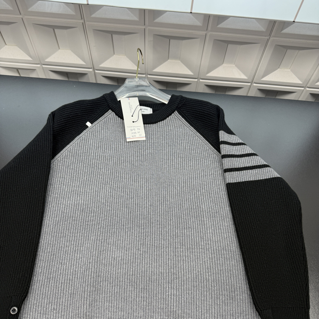 冬季热销爆款网红博主推荐款TB针织毛衣 拼接色袖子经典四道杠 三标齐全官网一致 放大看细节原相机实物拍摄 颜色 灰色 尺码 L 4xl L 80 105斤 XL 105 120斤 2XL 120 140斤 3XL 140 160斤 4XL 160 180斤