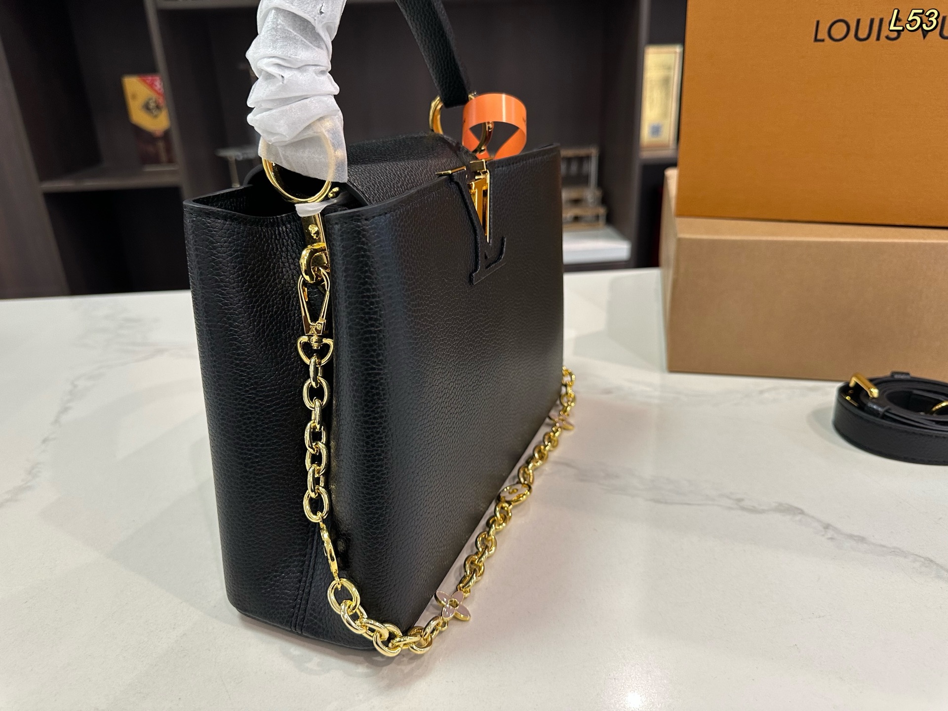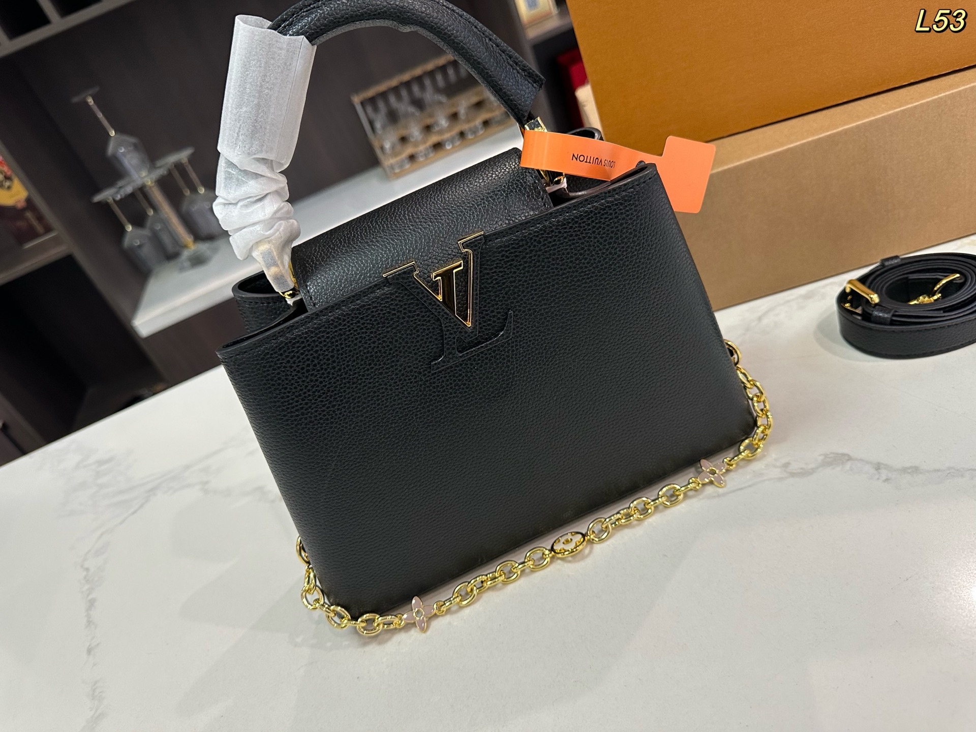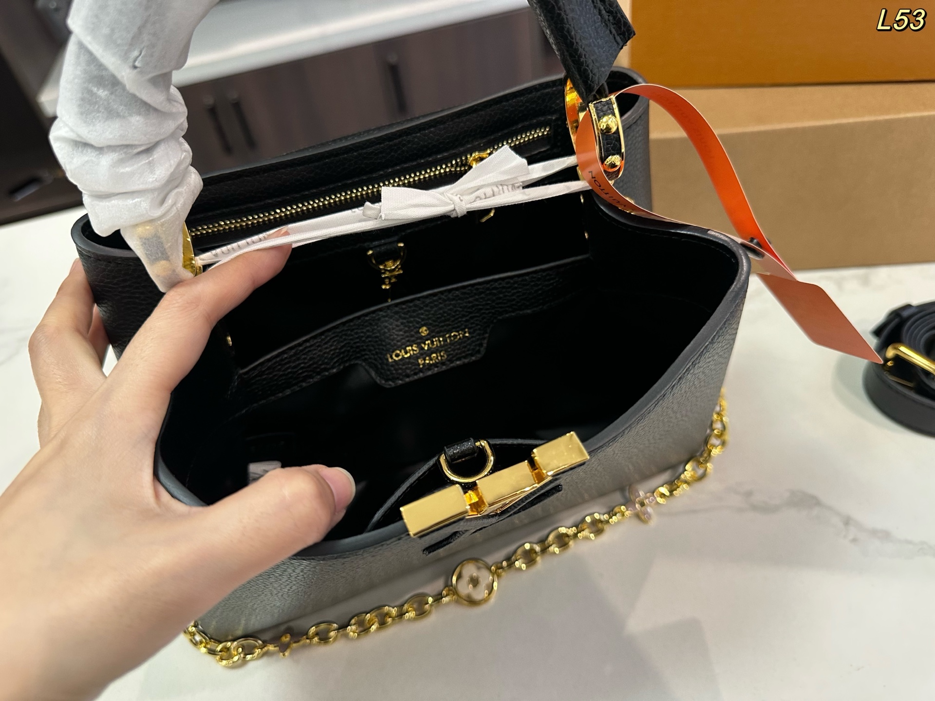 LV 升级款 Capucines bb 贵妇包 升级改造 今年最多明星街拍的LV包包你能想到哪些款式呢 恐怕大多女性都会把目光锁定到柔软的荔枝纹Taurillon系列吧 因为全都是高端之选 无论是休闲商务都是最有品味的 Capucines bb 设计很有亮点 几乎是人见人爱的 在明星街拍中也最常见到 范冰冰 高圆圆等明星都是它的忠粉呢 尺寸小巧的迷你包 比起大号要显得甜美许多