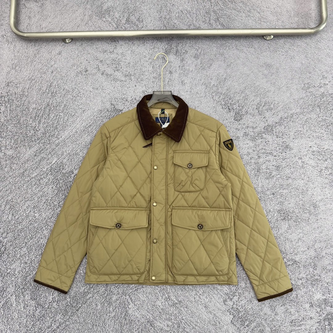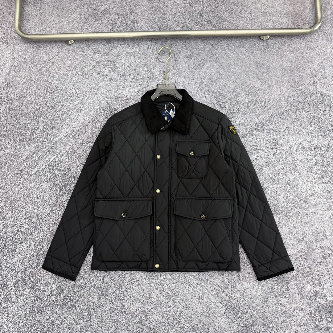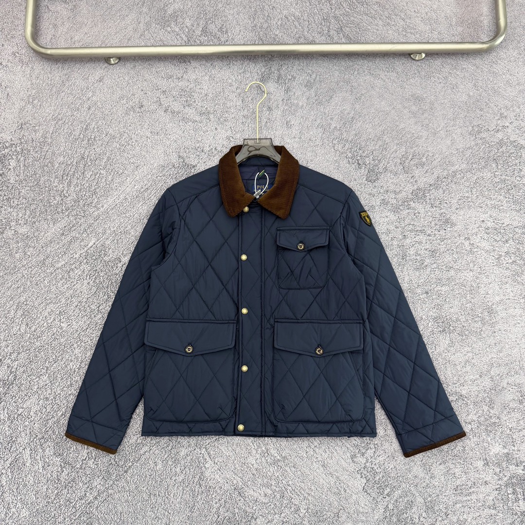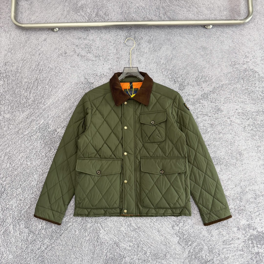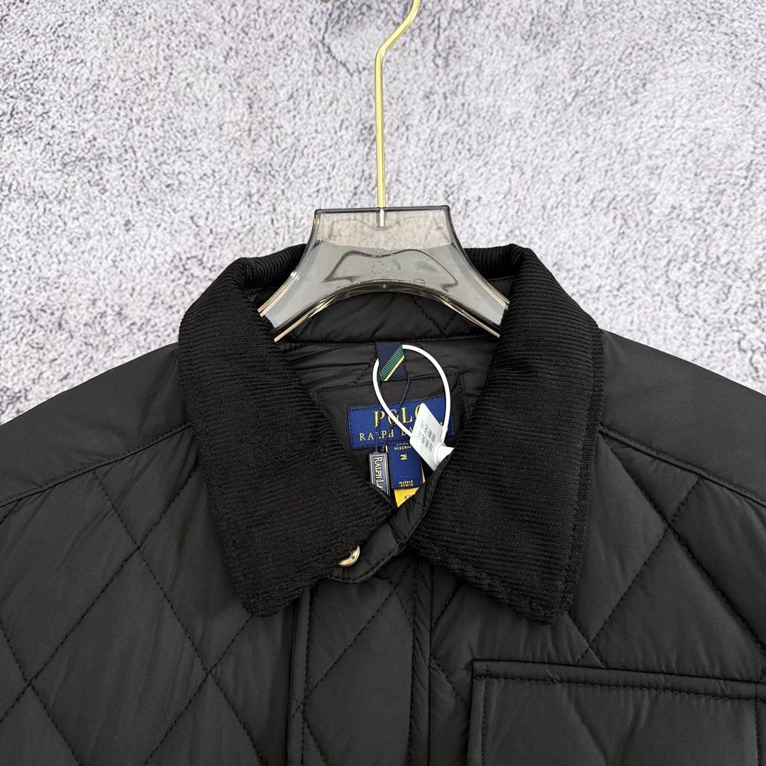 严选好货 Ralh Lauren拉夫劳伦新款男士菱形格翻领棉衣夹克外套 官网同步在售 超多网红达人上身 老钱风十足 菱形格绗棉工艺 双层风雪按扣门襟全拉链门襟 小立领设计领内袖口灯芯绒拼接设计 按扣式领袢 无意间彰显冬日复古老钱风调性 两侧纽扣翻盖口袋设计 腰侧纽扣开衩设计点 手臂拉夫盾形补片点缀 腋下金属透气孔 通风散热 原版五金辅料 做工细节都非常到位 上身效果一级棒 可配情侣 喜欢的不要错过 颜色 黑色 藏青 军绿 卡其 尺码 M一2XL