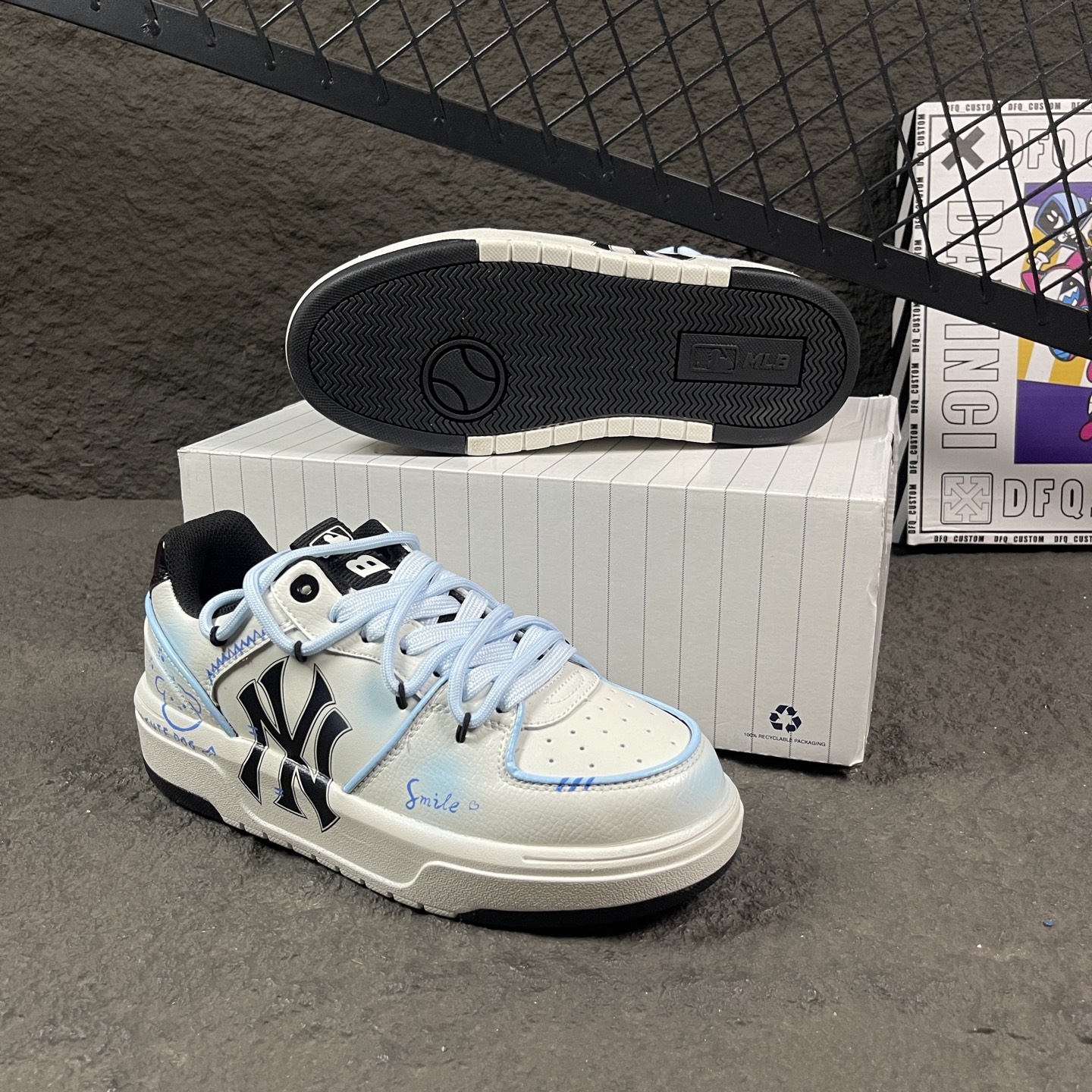 Korea韩国联名NY美国榄球纽约洋基队限定 韩国代购专供 全套原楦原纸板原厂数据开发 正确中底拉帮中底网布细节 平台代购专供 左脚内置芯片 韩国代购吊牌标贴 独家一比一RB MD组合大底 高频后跟小人Logo精准对位立体饱满 正确网布加超迁鞋面 转印中底走线紧密 转印Logo工艺表层防刮不掉色