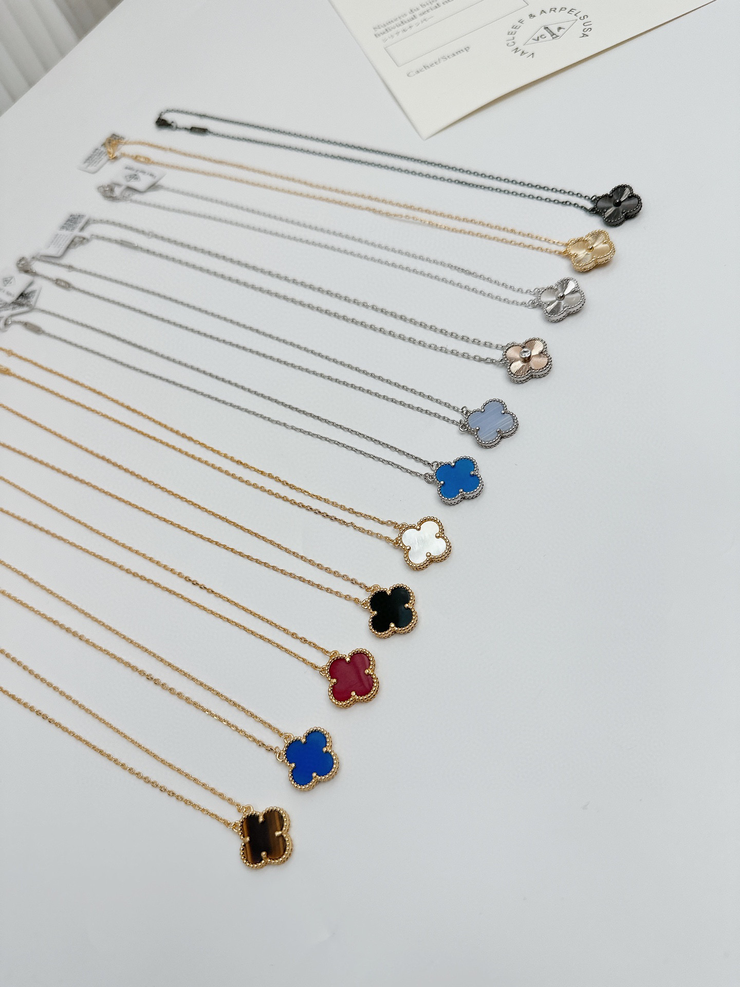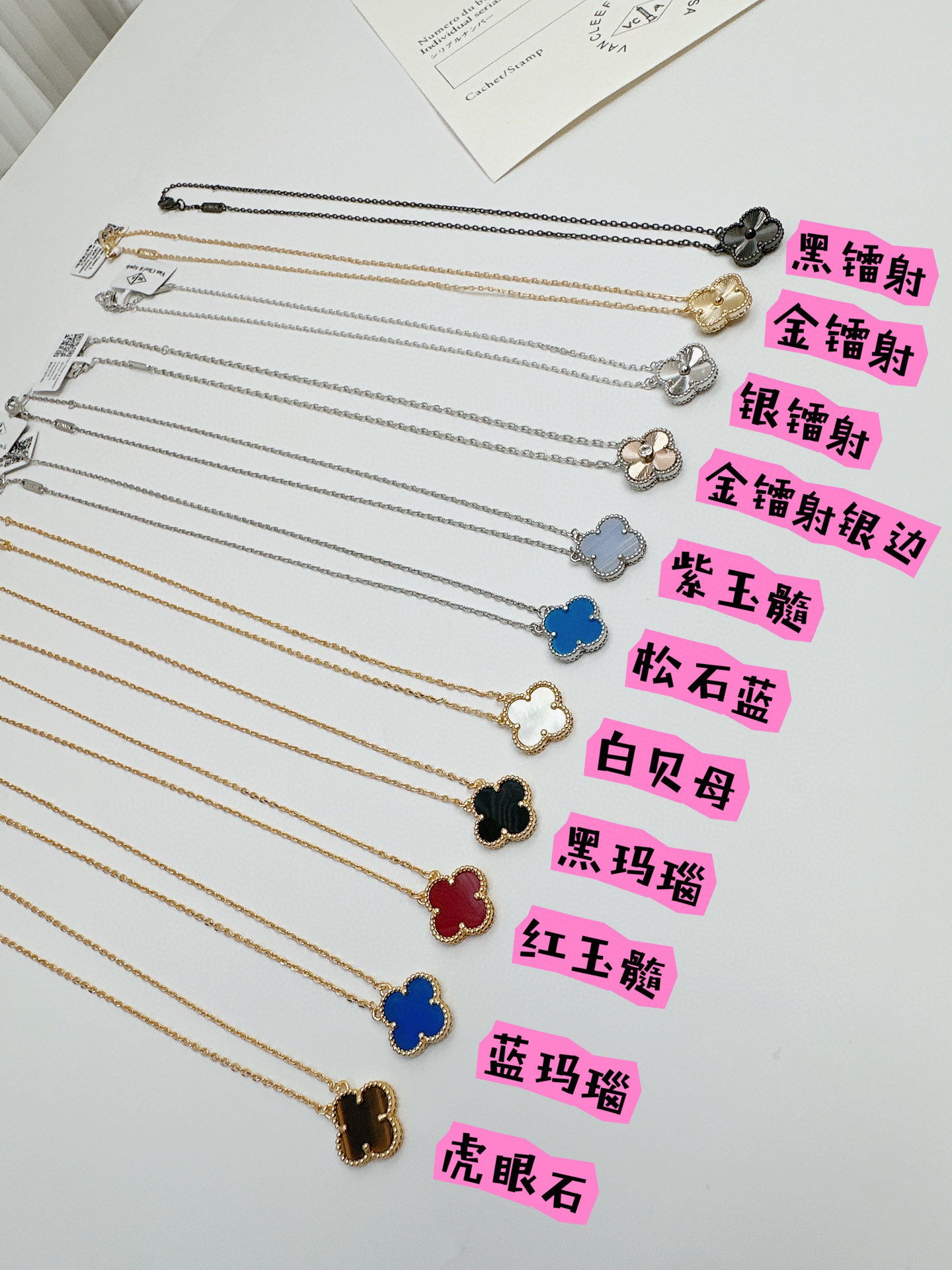 精工1 1精工版本 代购品质Van Cleef Arpels 梵克雅宝VCA四叶草项链 白贝母白色四叶草项链 红玉髓红色四叶草项链 黑玛瑙黑色四叶草项链 蓝玉髓蓝色四叶草项链 虎眼石四叶草项链 金色镭射四叶草项链 绿松石暴力蓝四叶草项链 黑枪色镭射四叶草项链 银色镭射四叶草项链 紫玉髓四叶草项链 金镭射银边四叶草项链 配全套专柜包装 原版打磨 对版尾链 专柜原版刻印 适合一年四季佩戴的四叶草项链 高级有质感 日常通勤又百搭 金色链条超级显白 四叶草寓意代表着一切美好 名誉 财富 爱情个健康 幸福的含义