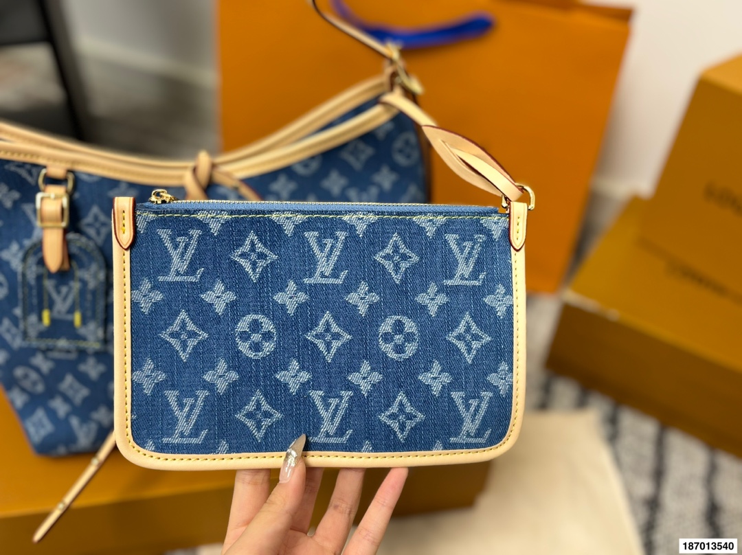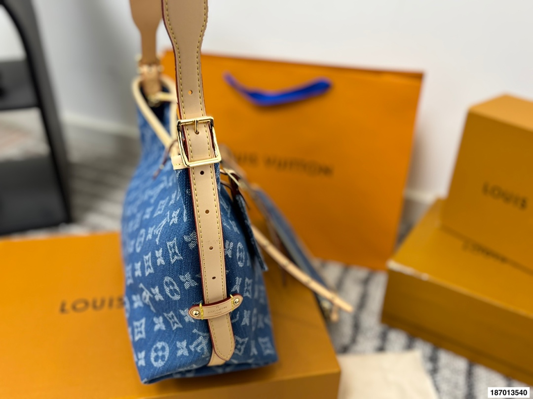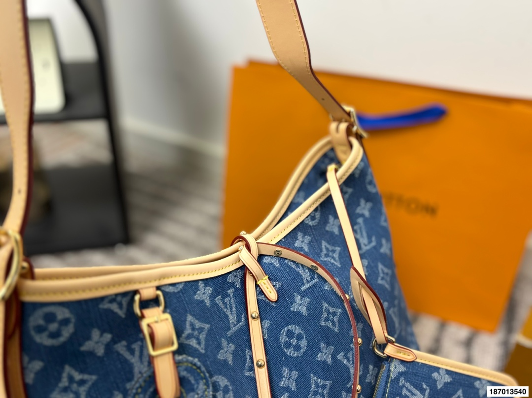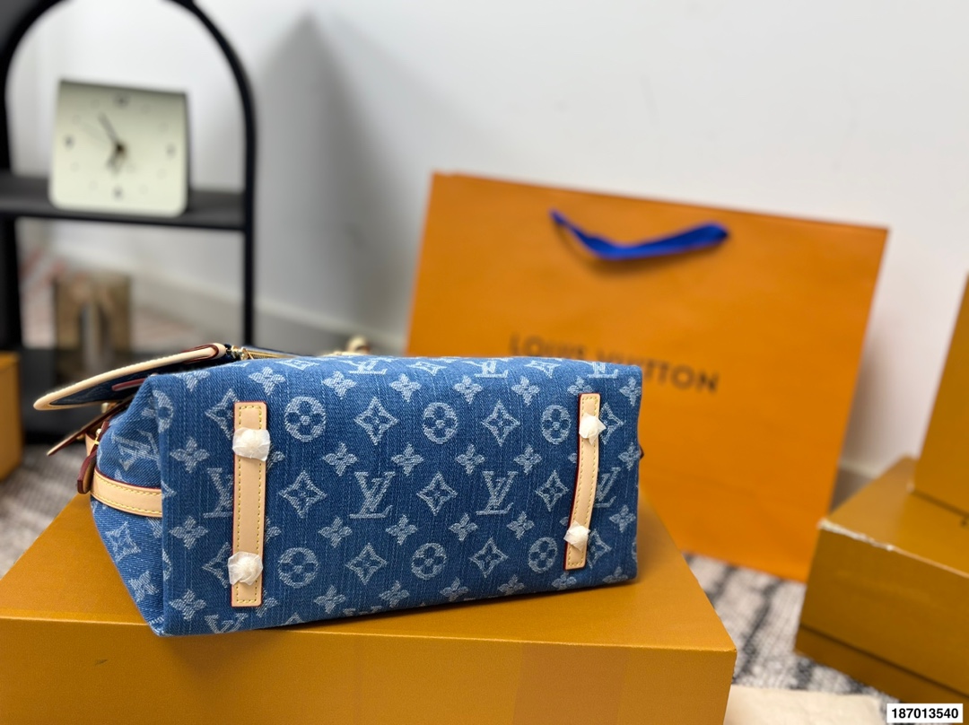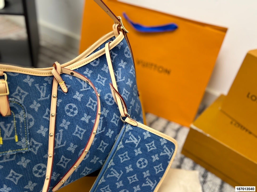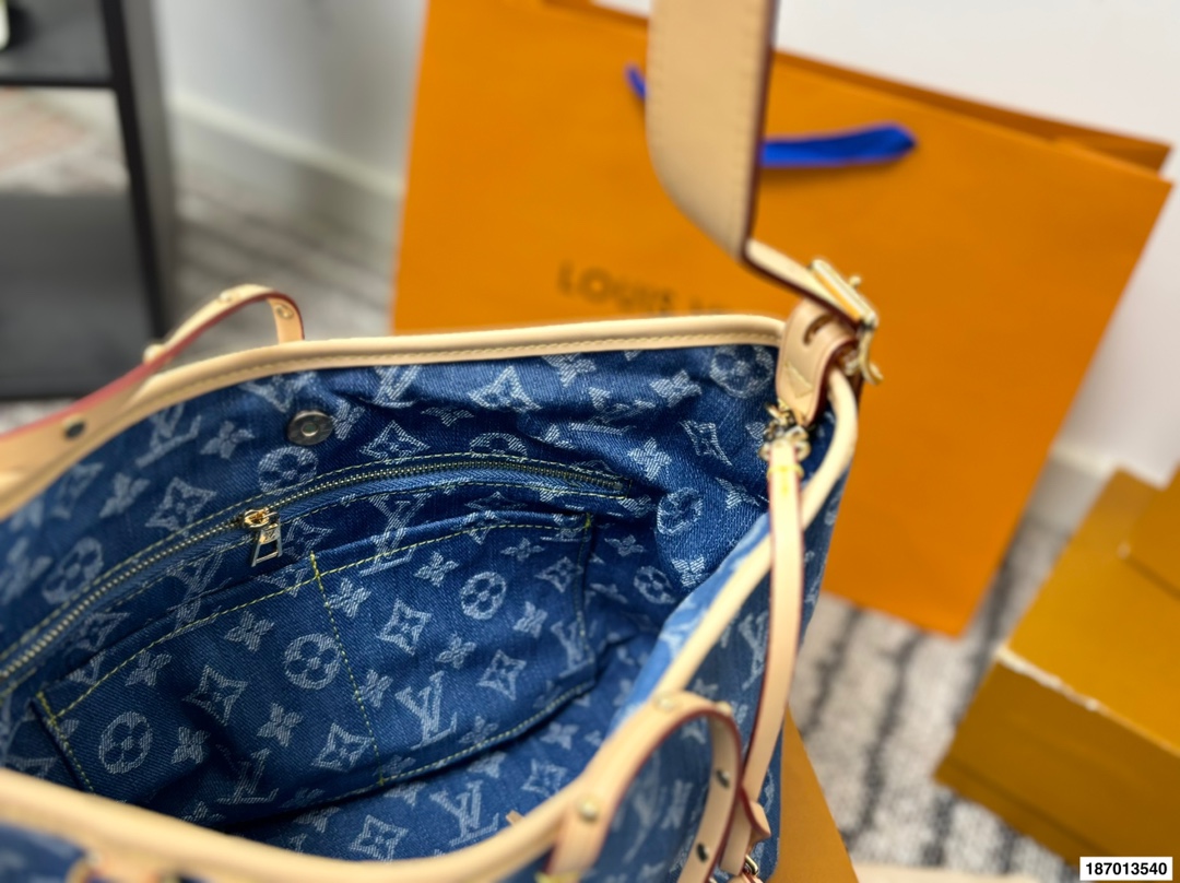 折叠盒 路易威登LVCarry all 丹宁 购物袋 Carry all 丹宁好帅斜背也好看 丹宁这款简直是我最爱的包包了 Iv24限量款丹宁牛仔 carryall 丹宁牛仔的材质超级轻便超级好凹造型 肩带的植鞣革采用了这一系列经典的 铆钉的设计搭配太好看了 尺寸29 25